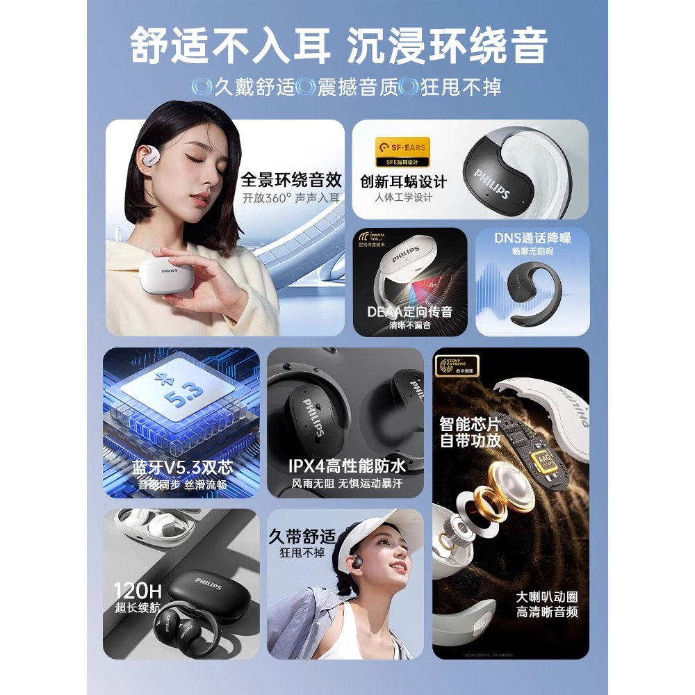 飞利浦TAT2708无线蓝牙耳机降噪挂耳式运动跑步开放式2025新款