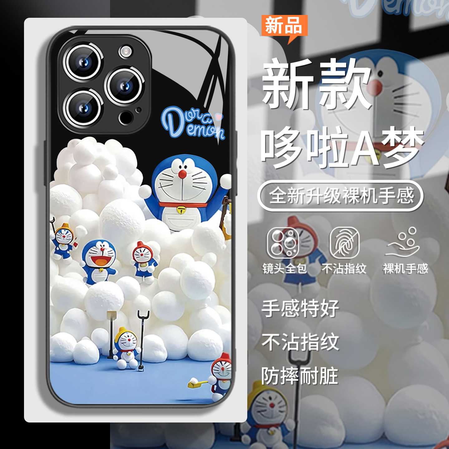 适用iPhone16哆啦A梦手机壳苹果15promax新款14plus蓝胖子13卡通可爱12时尚11网红爆款xsmax女xr玻璃xs/x套8