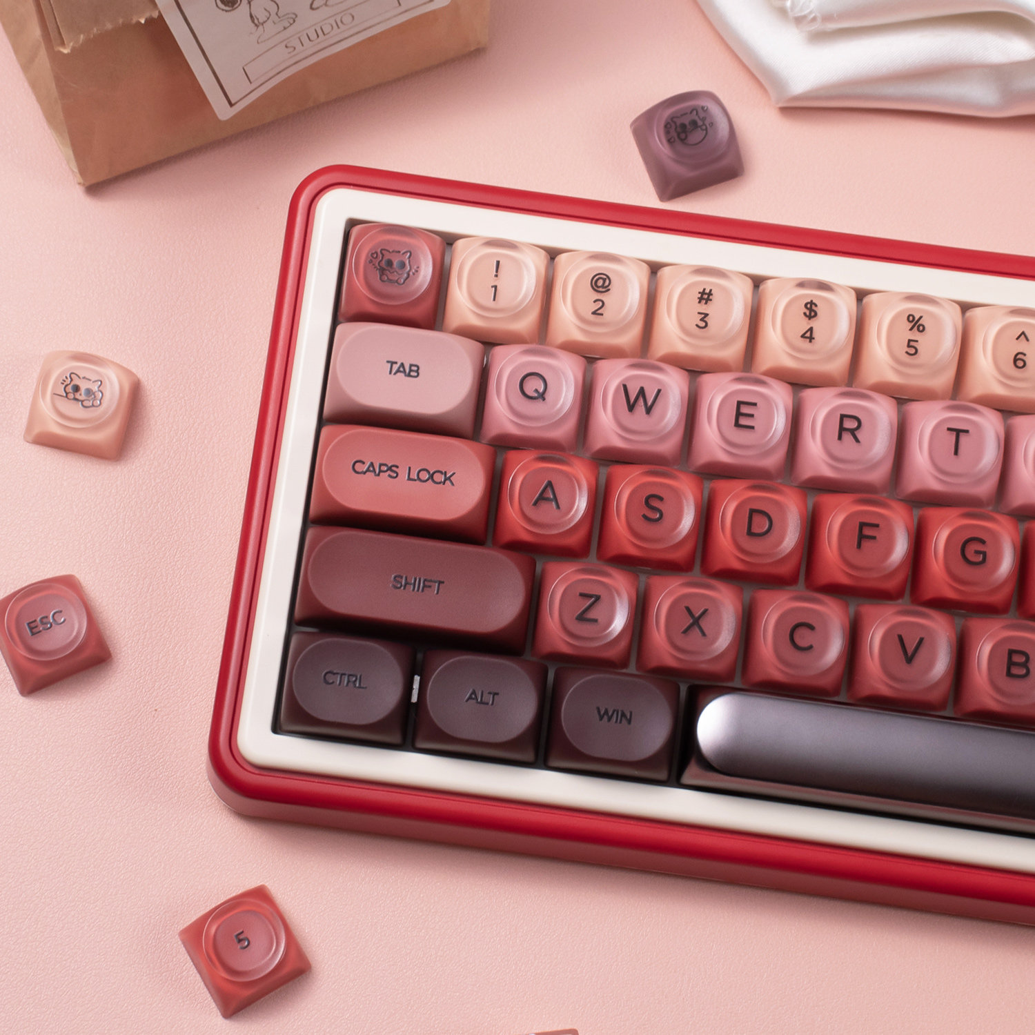 HOA粉底液主题机械键盘键帽粉/蓝/绿色热升华PBT+PC女生可爱球帽