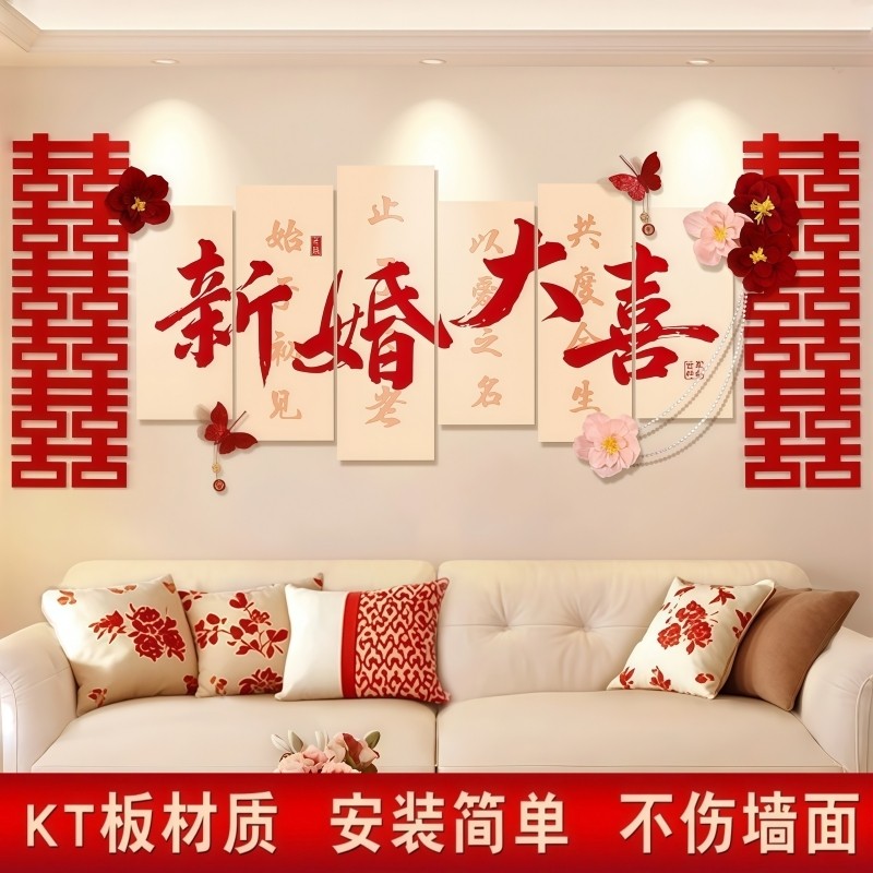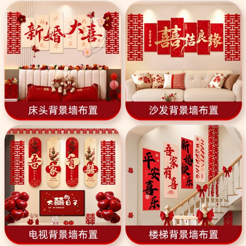 婚房布置结婚套装拉花装饰喜字男女方卧室背景墙楼梯床头客厅沙发