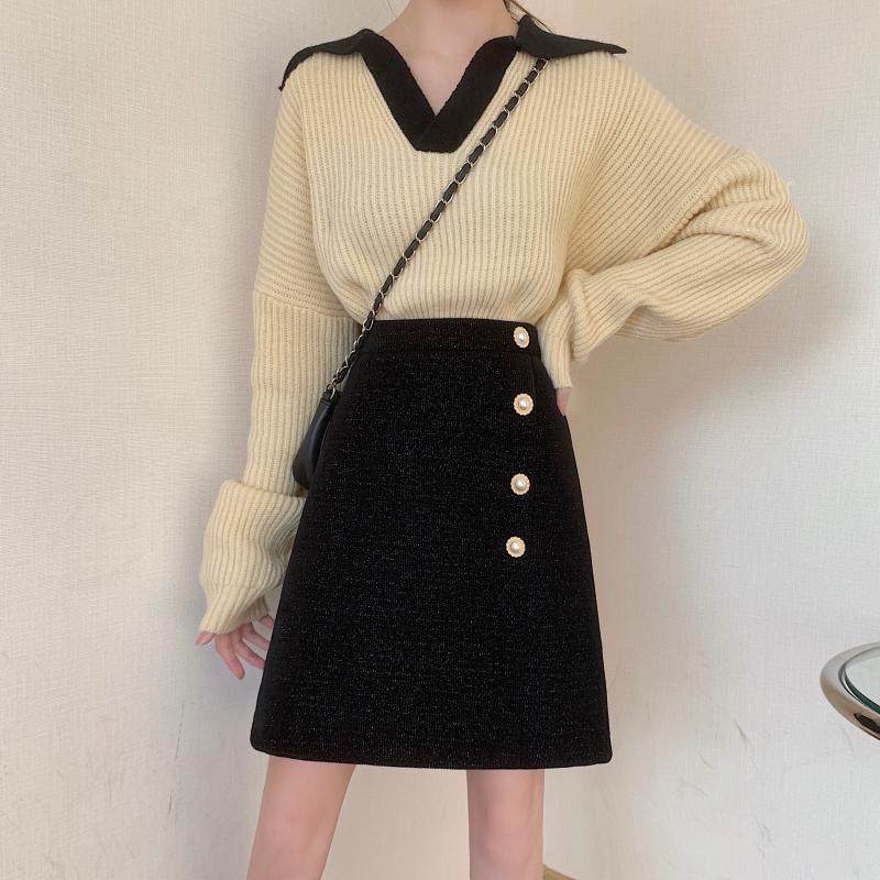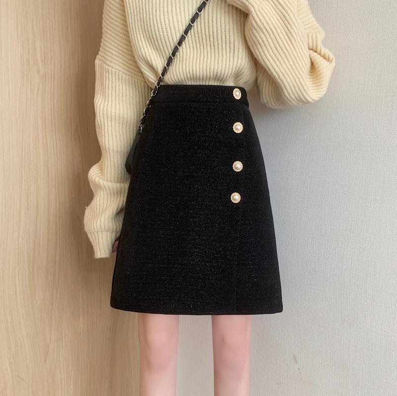SIINSIIN直筒裙加绒2025年新款高腰收腹半身裙女黑色显瘦A字裙tk
