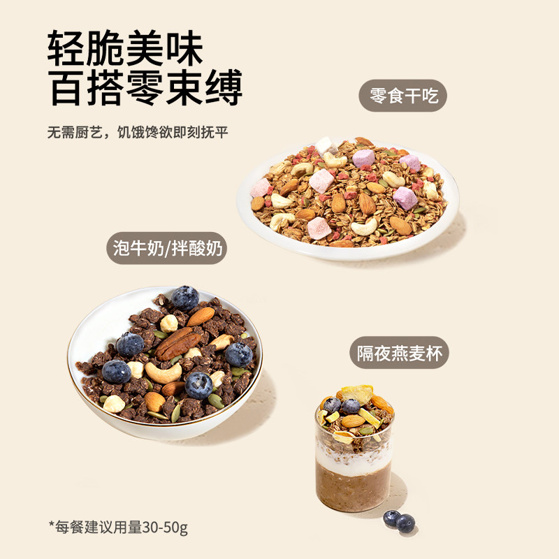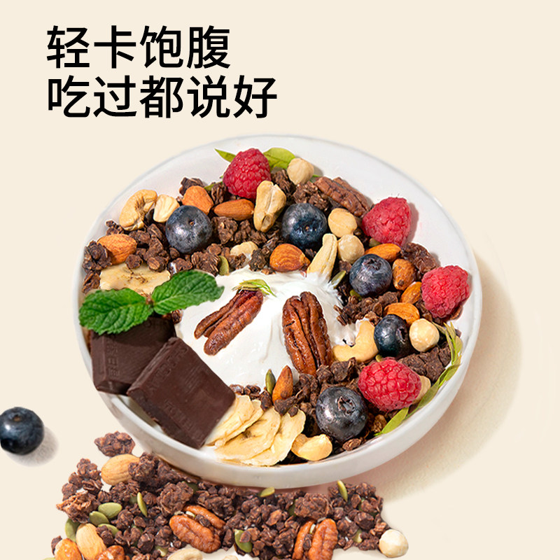 ohmyfood格兰诺拉榛果黑巧克力可可烘焙燕麦片坚果酸奶碗代餐即食