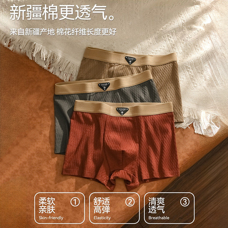 日本无印优品纯棉内裤男新疆长绒棉无缝全棉纯色透气平角裤中腰