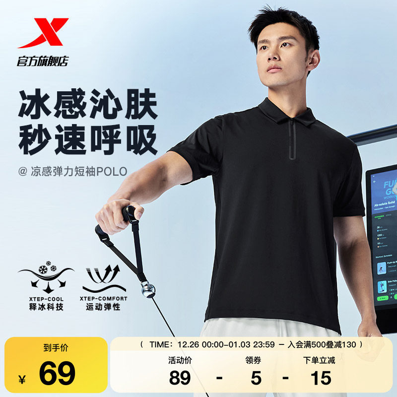 特步冰丝POLO衫男士2025年新款夏季训练半袖立领T恤透气运动短袖