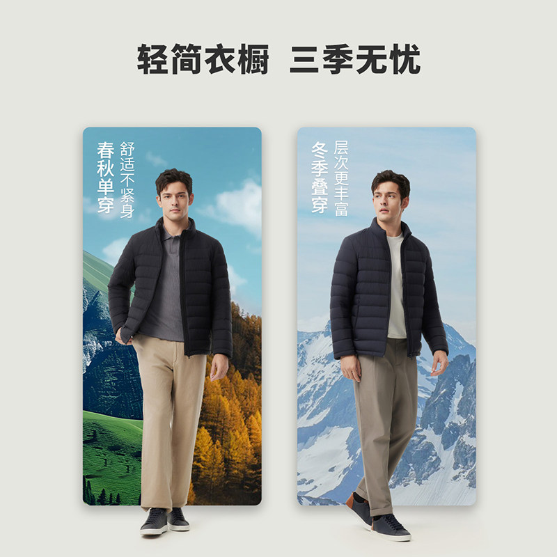 【5级拒水】坦博尔25冬新款轻薄羽绒服男士立领短款大码保暖外套