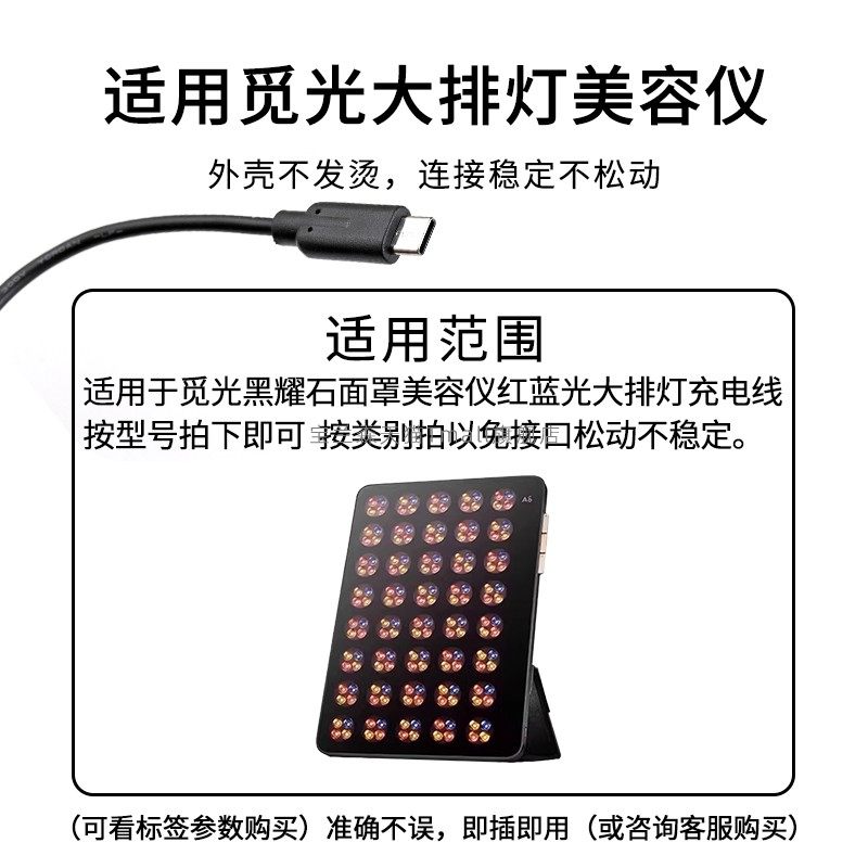 适用于 AMIRO觅光黑耀石面罩美容仪充电器配件红蓝光大排灯充电线数据线15Vtype