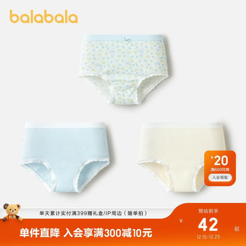 巴拉巴拉女童内裤棉a类儿童三角短裤子亲肤中大童小童宝宝三条装