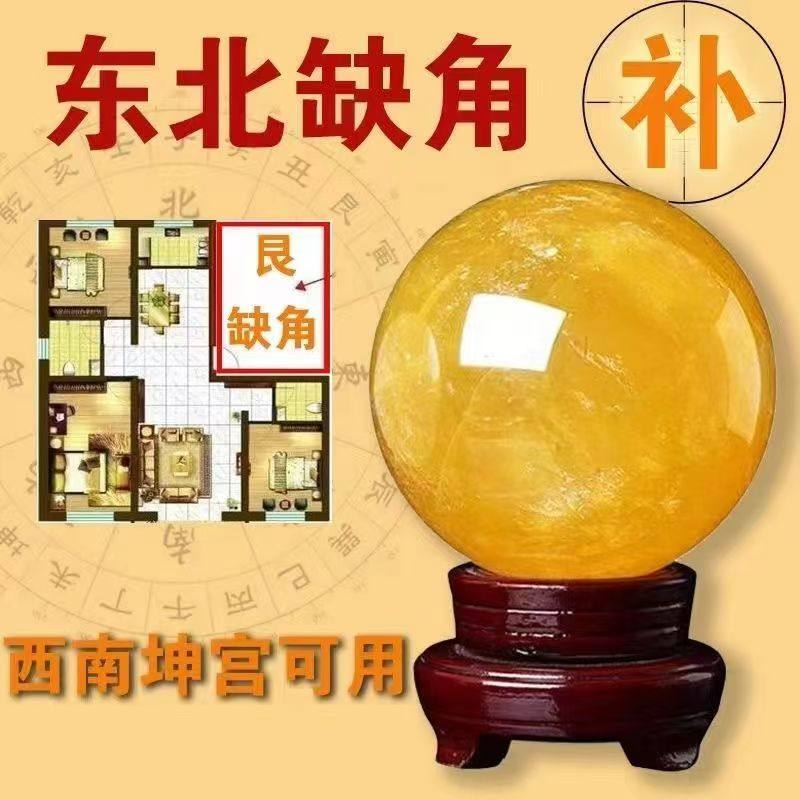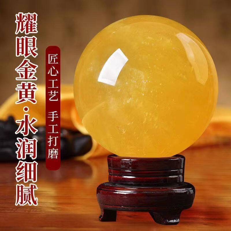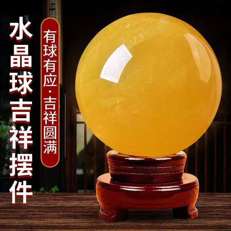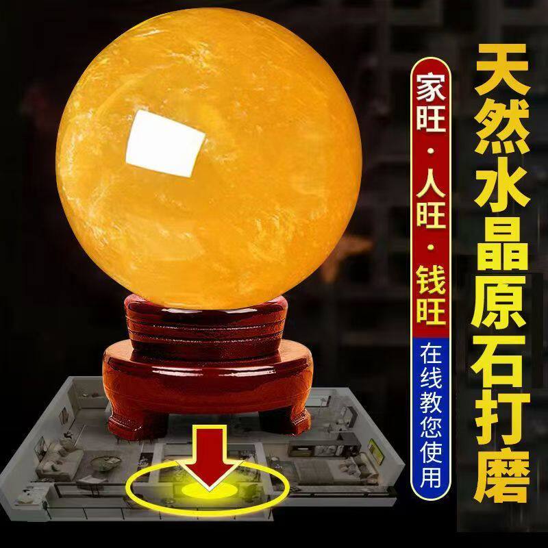 天然黄水晶球原石厨房客厅装饰办公室招财高档风水转运球摆件化解