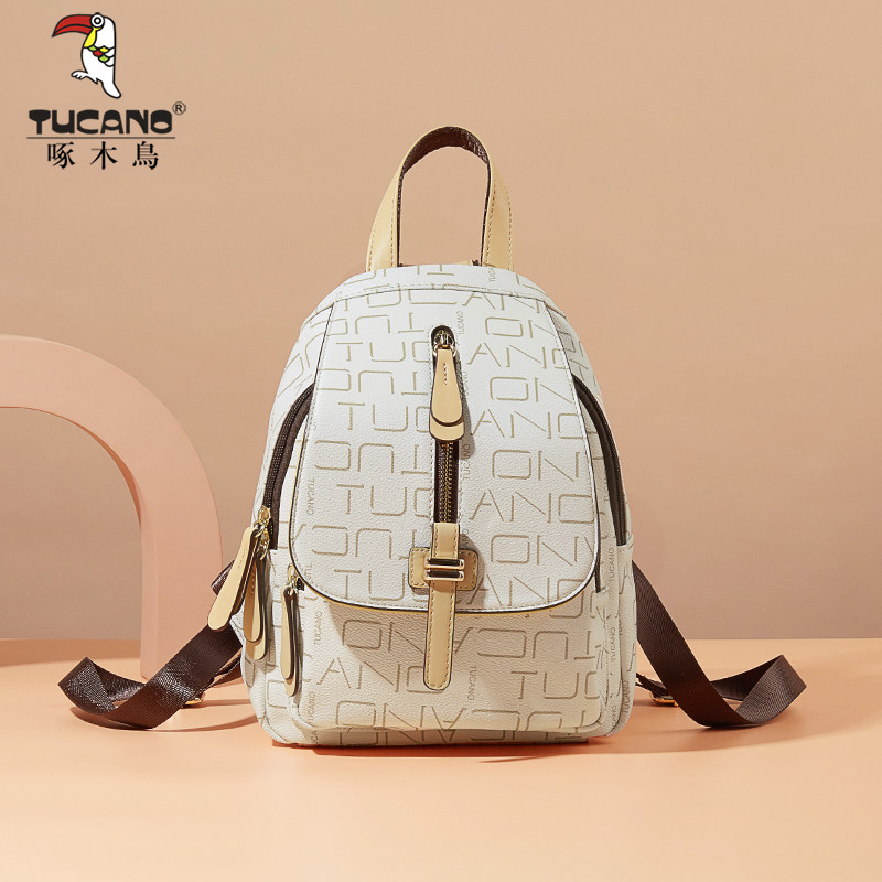 啄木鸟2025新款高级感旅行时尚老花女士双肩包通勤pvc背包大容量