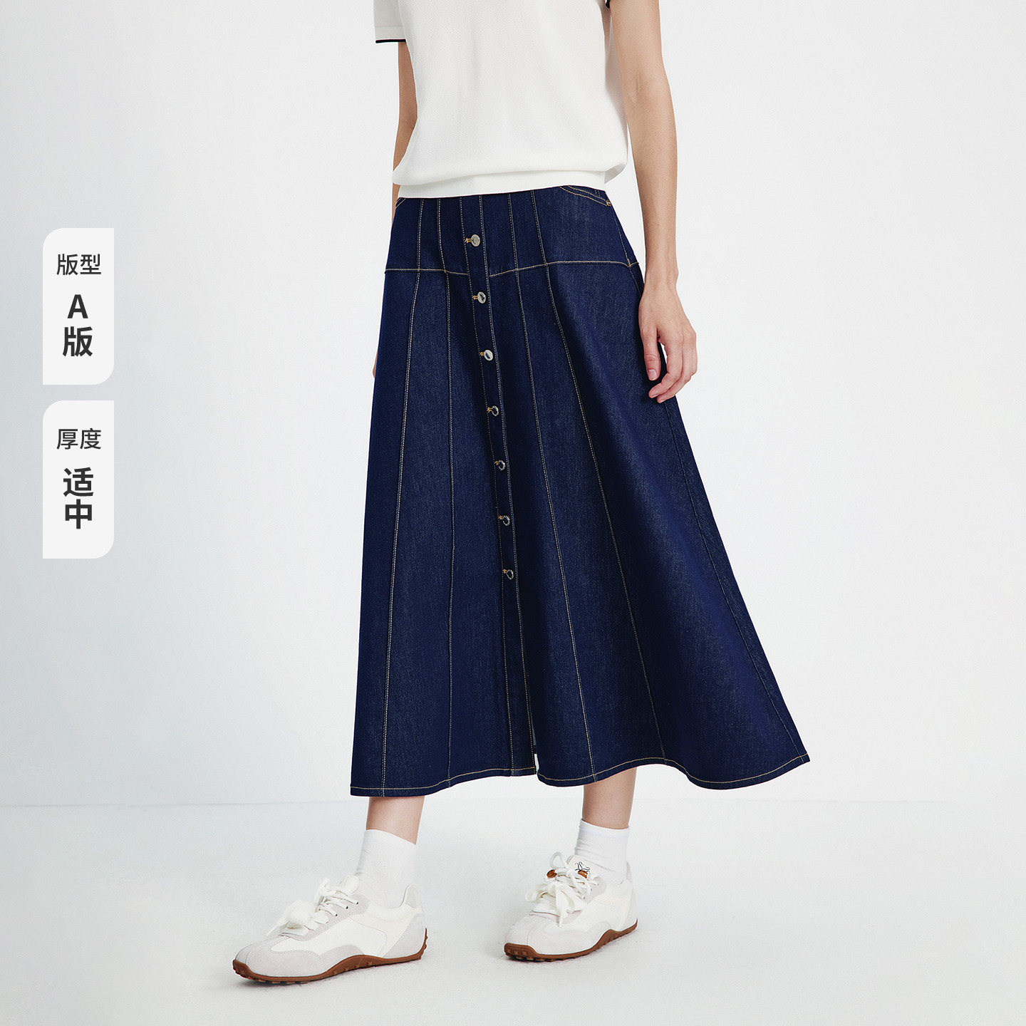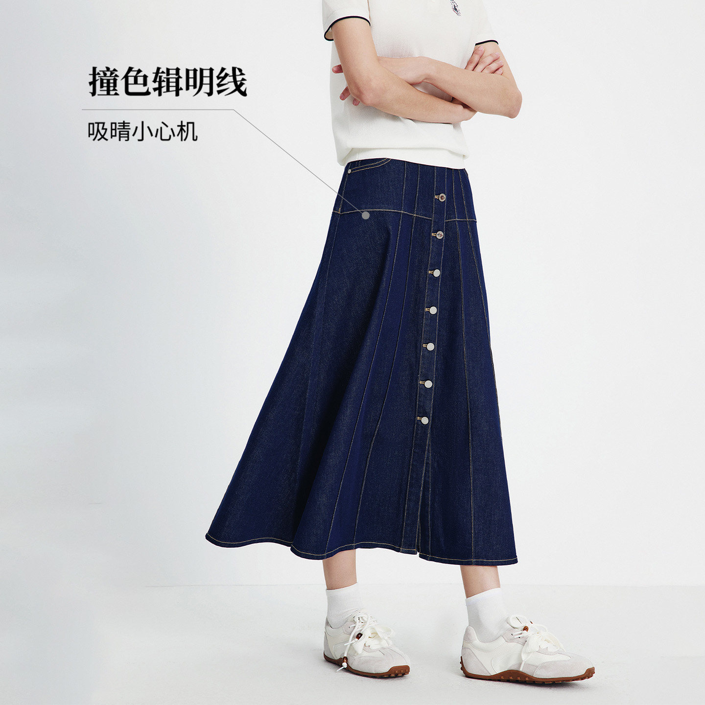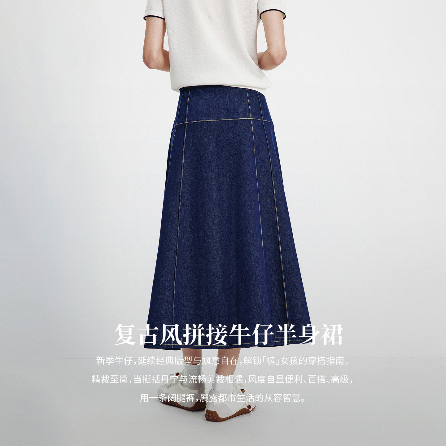 Navigare意大利小帆船复古拼接牛仔半身裙女2026春夏百搭A字半裙