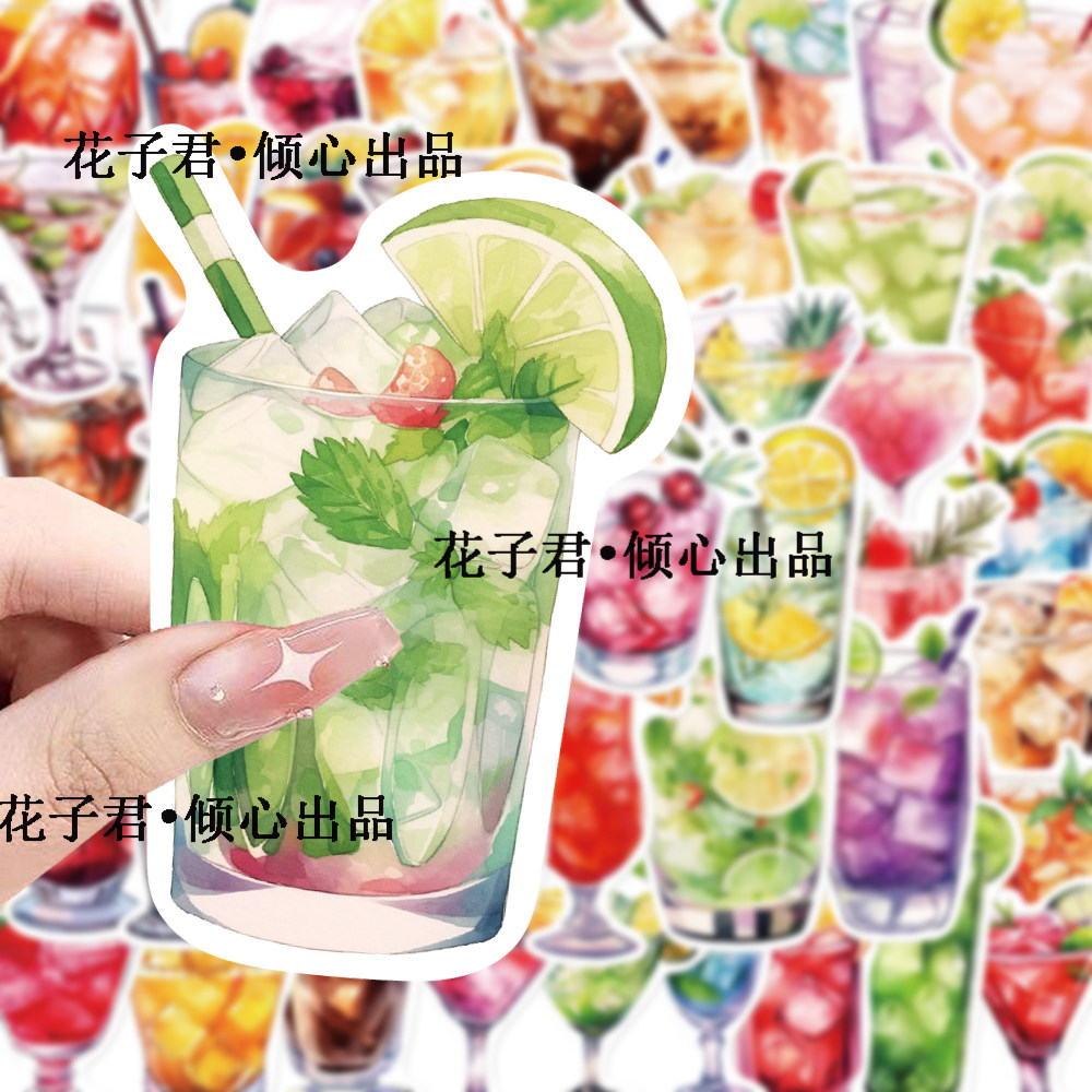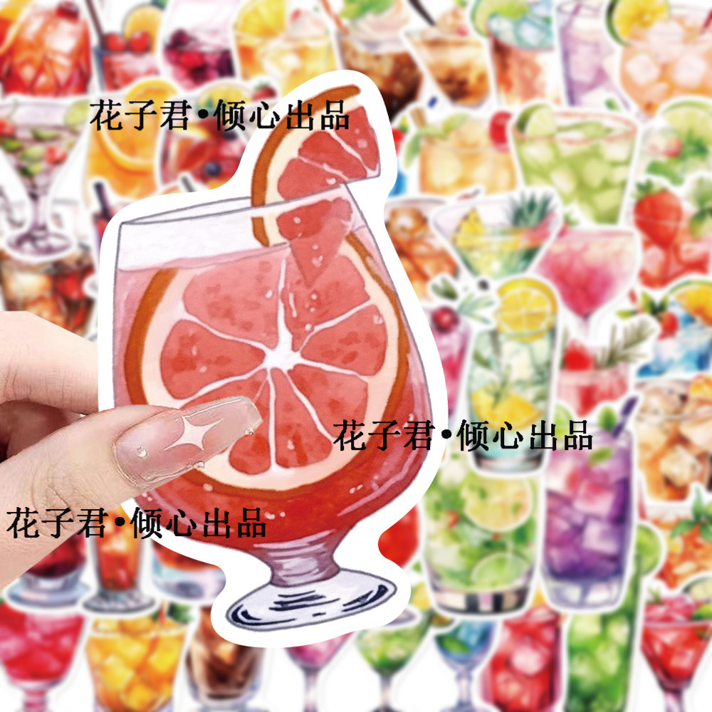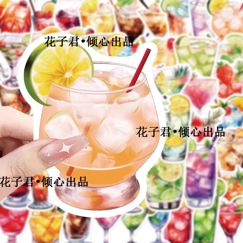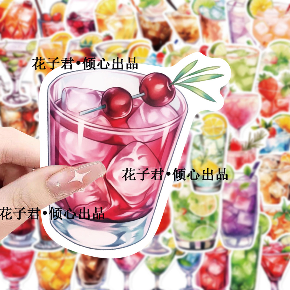 50张鸡尾酒贴纸ins风小清新高颜值涂鸦装饰手账桌面水杯防水贴画