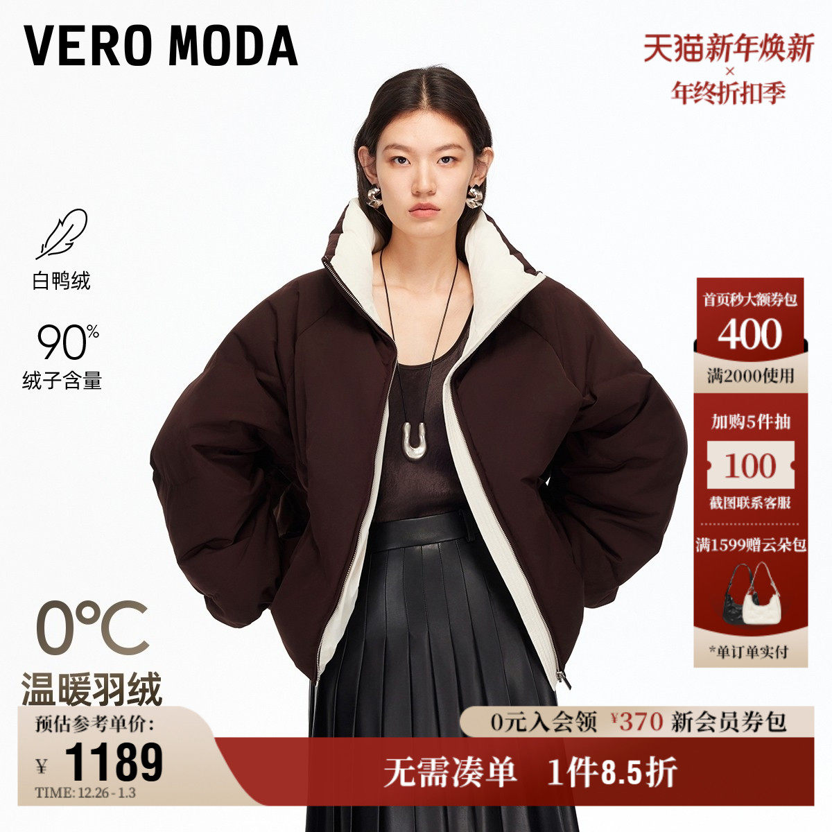 Vero Moda奥莱羽绒服女2025冬季新款90白鸭绒拼接撞色羽绒服气质