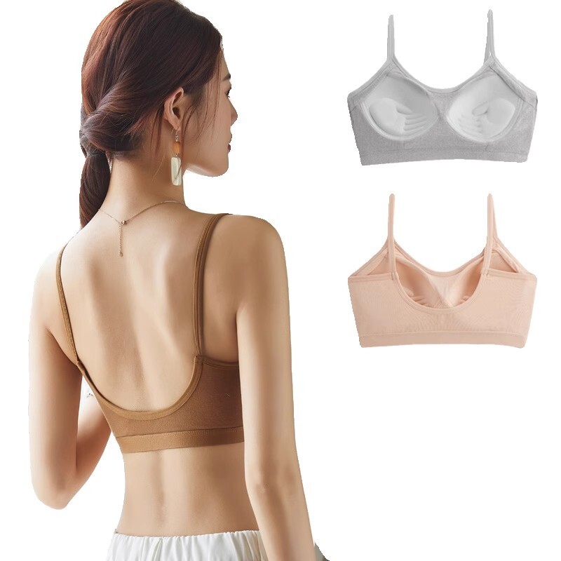 纯棉杯薄款内衣小胸聚拢美背文胸抹胸一体吊带背心式女副乳钢圈
