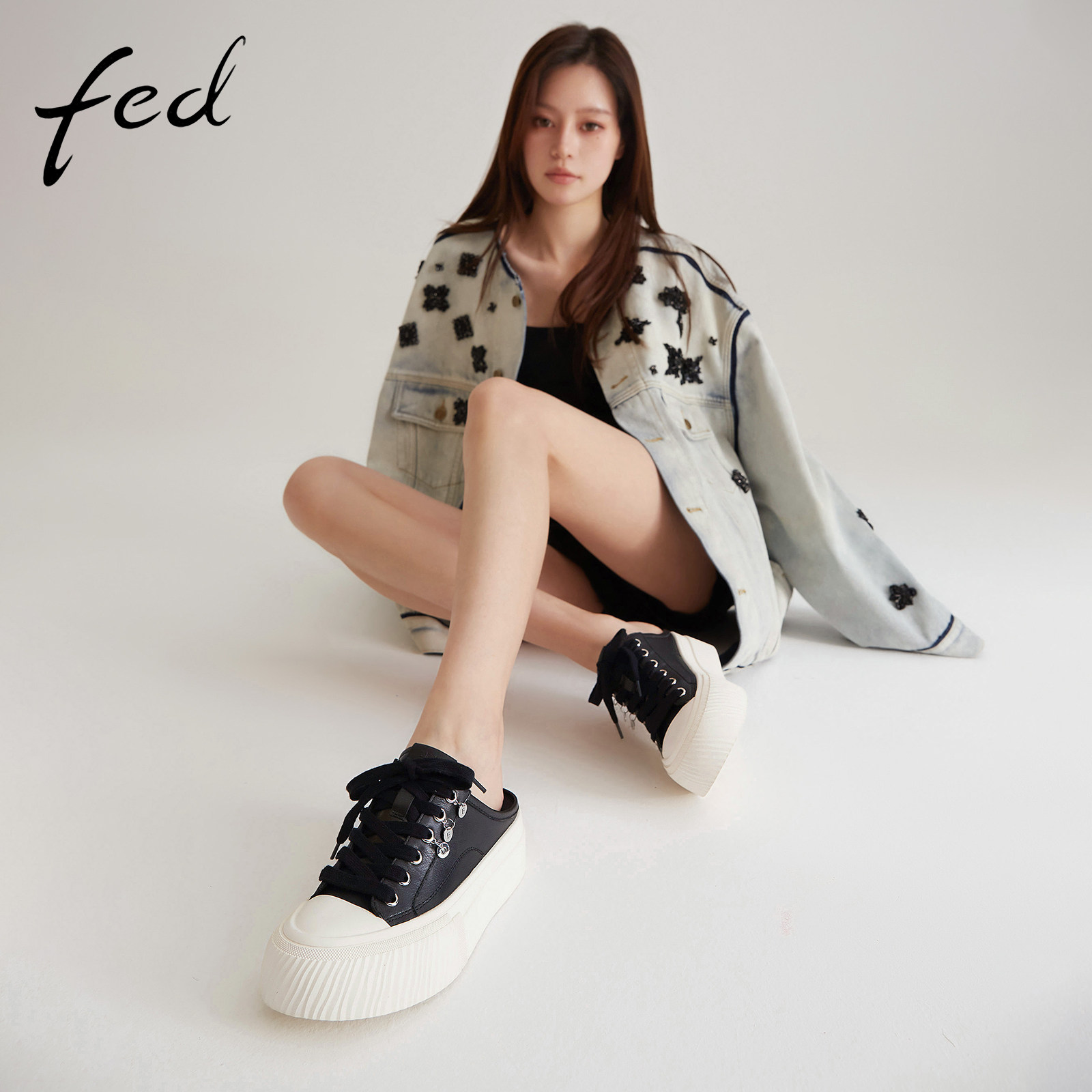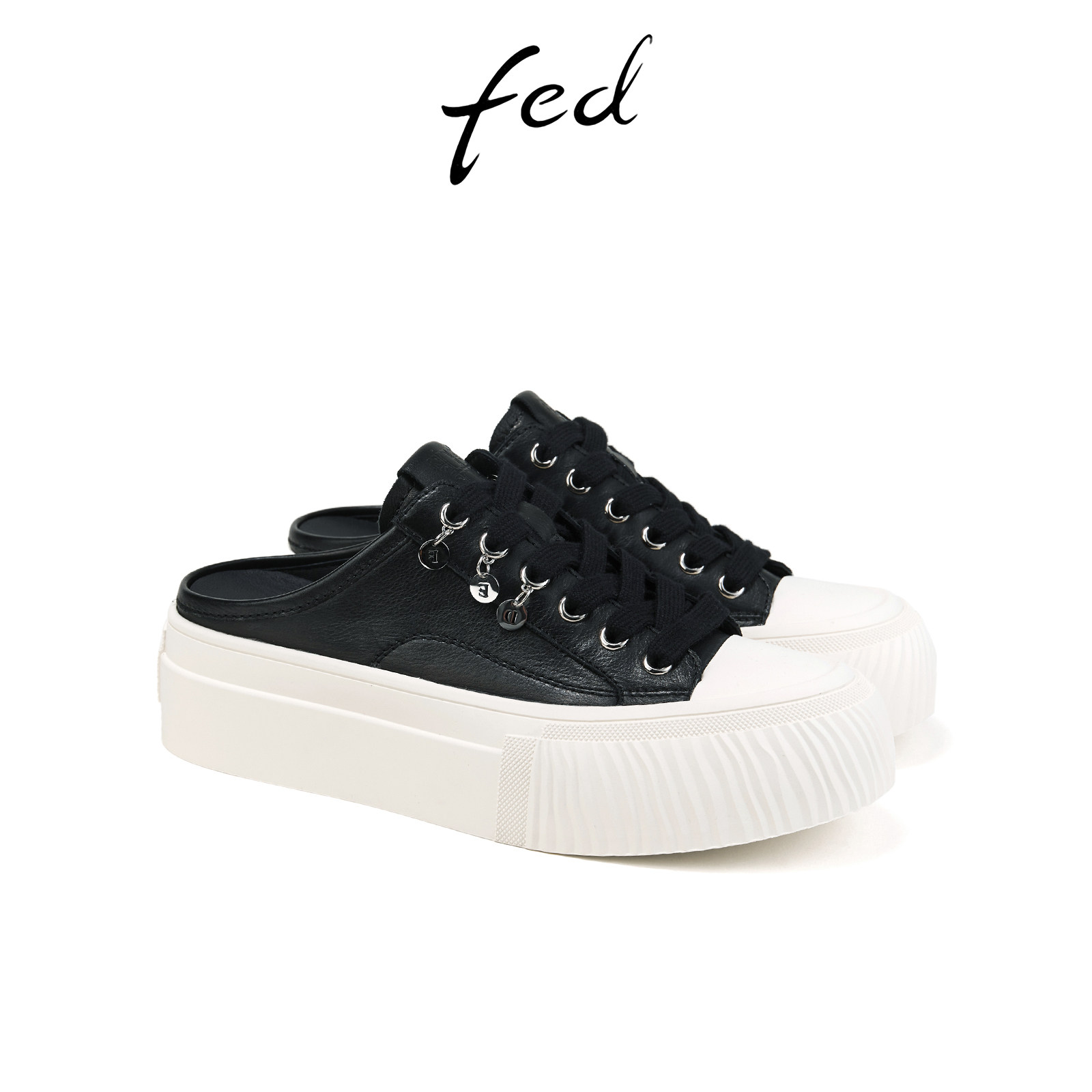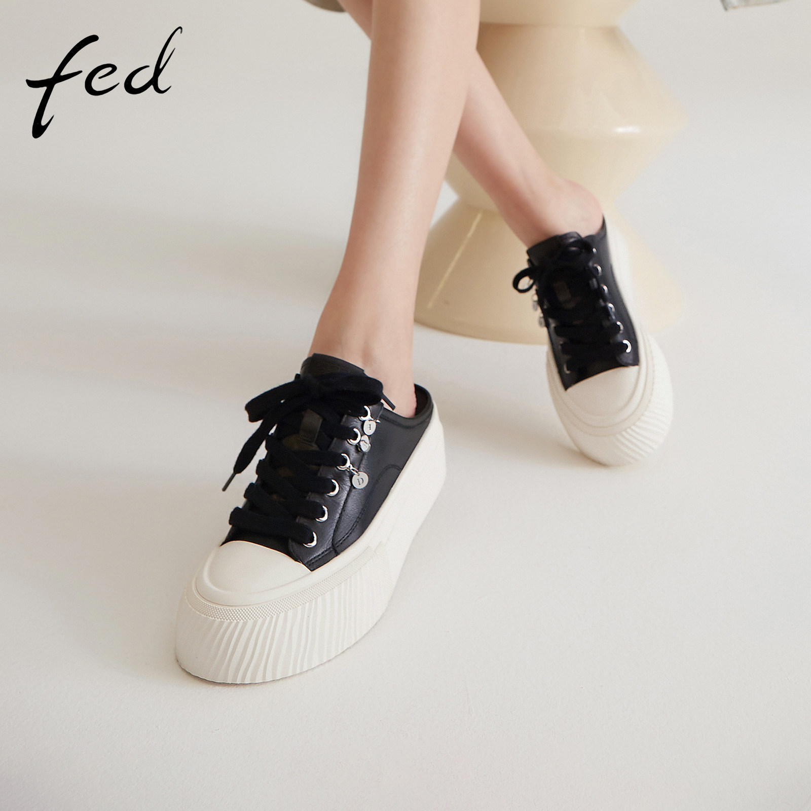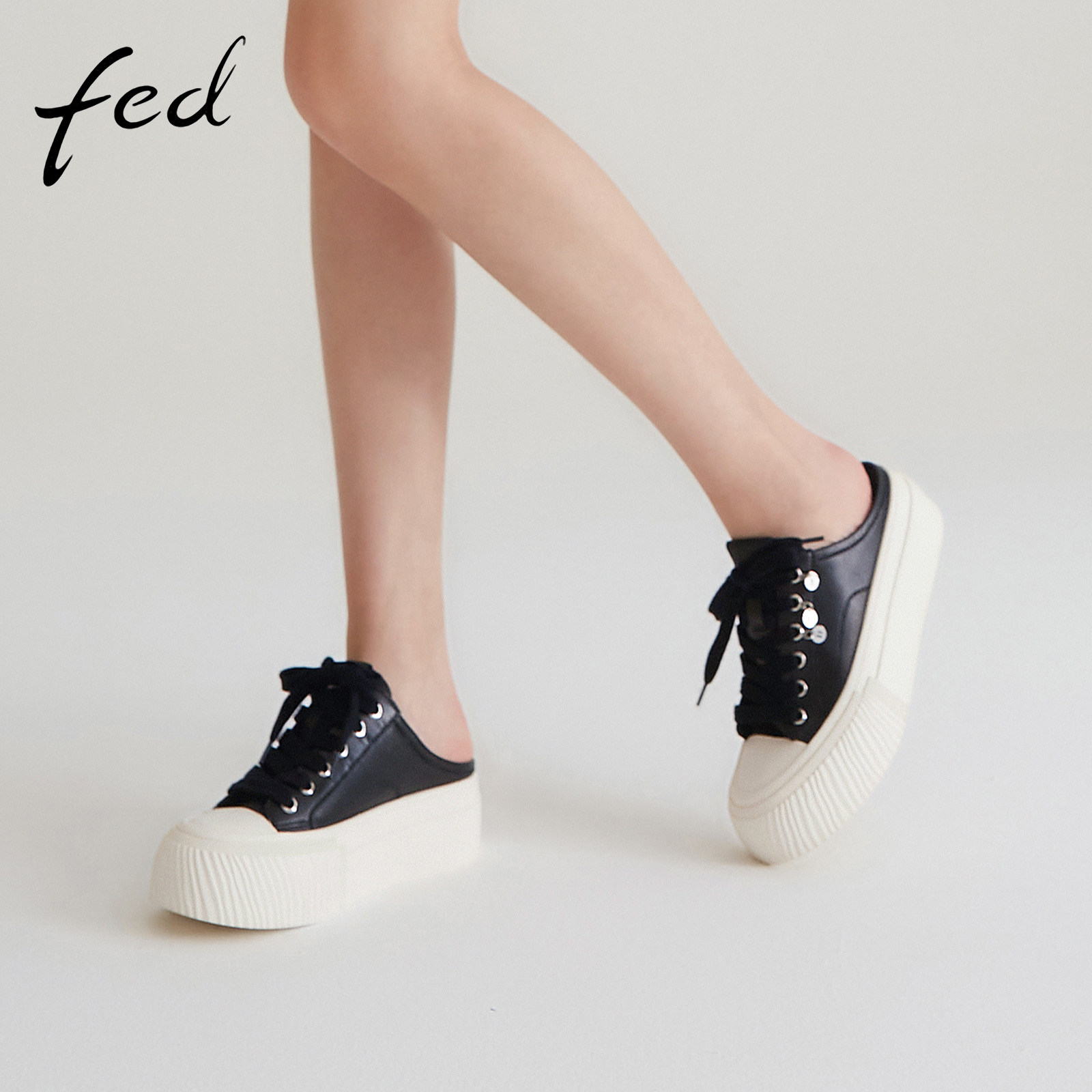 fed后空休闲鞋春季新款女鞋松糕底真皮半拖外穿拖鞋女S0218-YA316