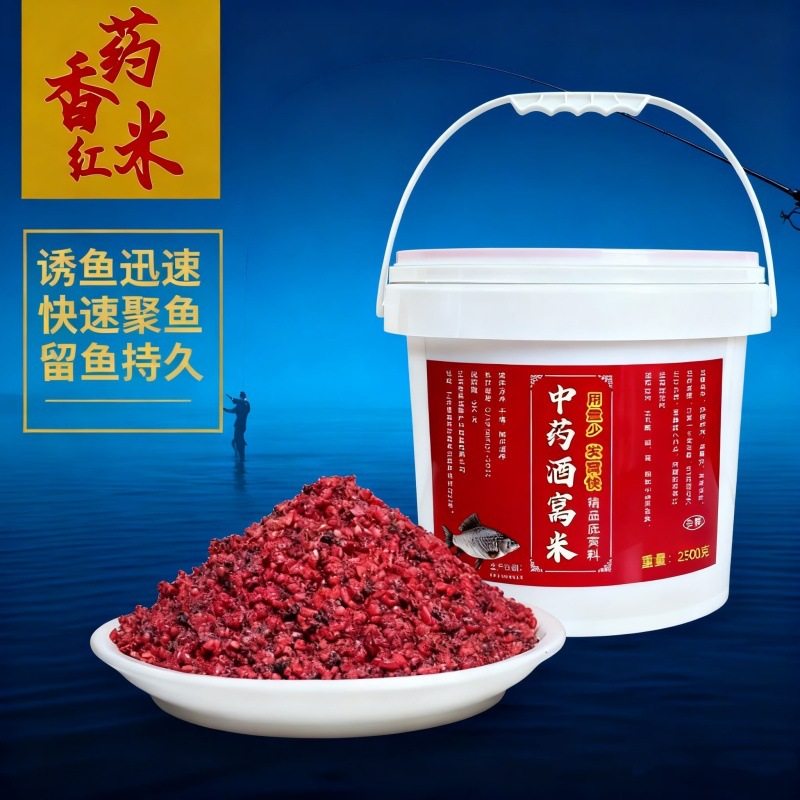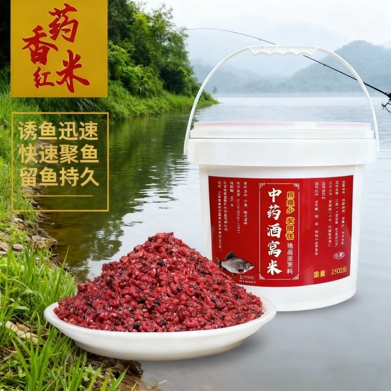 野钓鲫鱼钓鱼中药红米药香酒米发酵药酒鲤鱼鱼饵诱鱼窝料钓鱼饵料