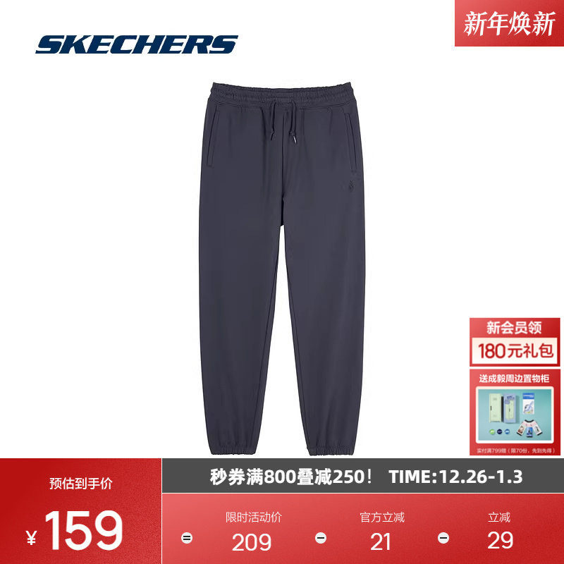 斯凯奇秋季新款男士运动长裤针织束脚裤宽松舒适亲肤简约风格个性