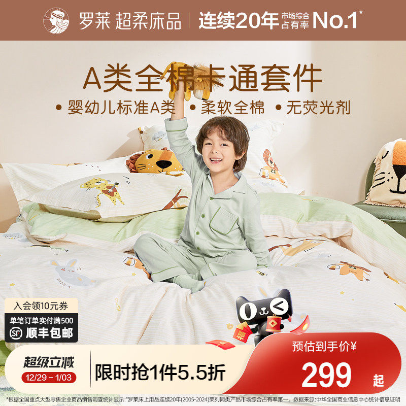 罗莱家纺全棉学生宿舍床单被套被罩纯棉四件套儿童床上用品三件套