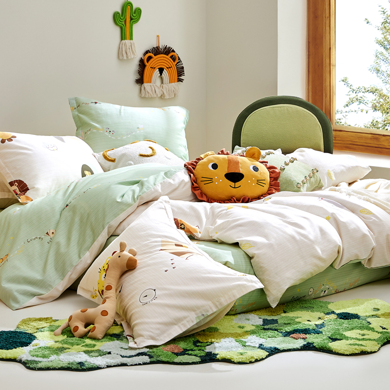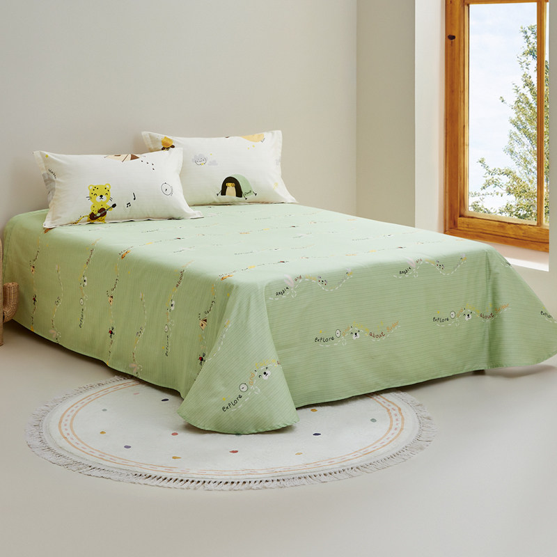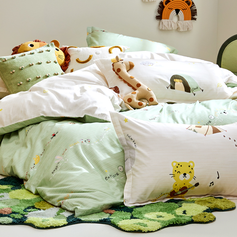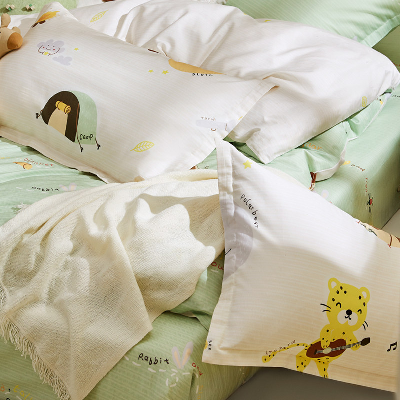 无印良品全棉四件套学生宿舍纯棉卡通儿童被套床单三件套床上用品