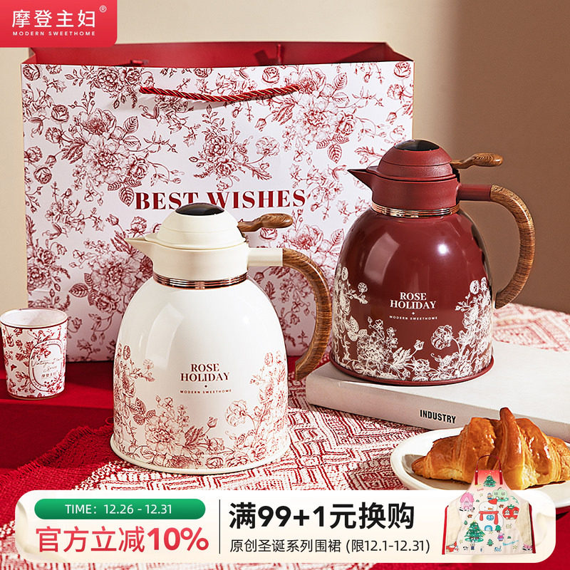 摩登主妇玫瑰假日保温壶红色暖壶女方陪嫁结婚礼物用品一对热水壶