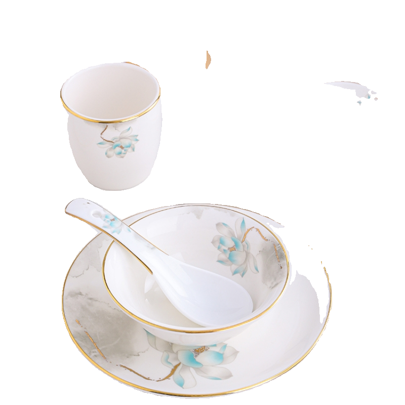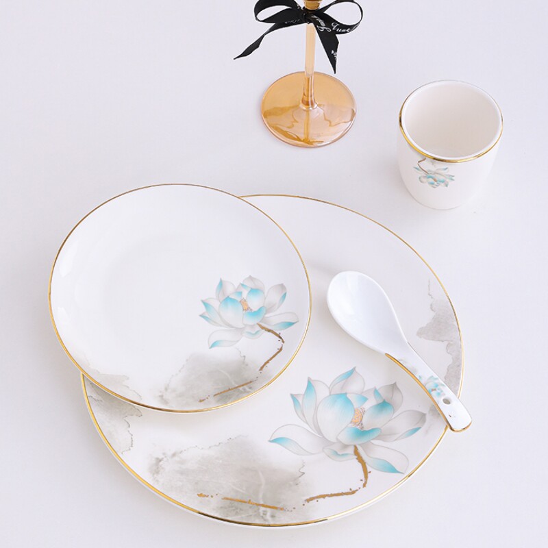 酒店陶瓷摆台餐具三件套新中式餐厅会所盘碗骨碟套装定制四件套