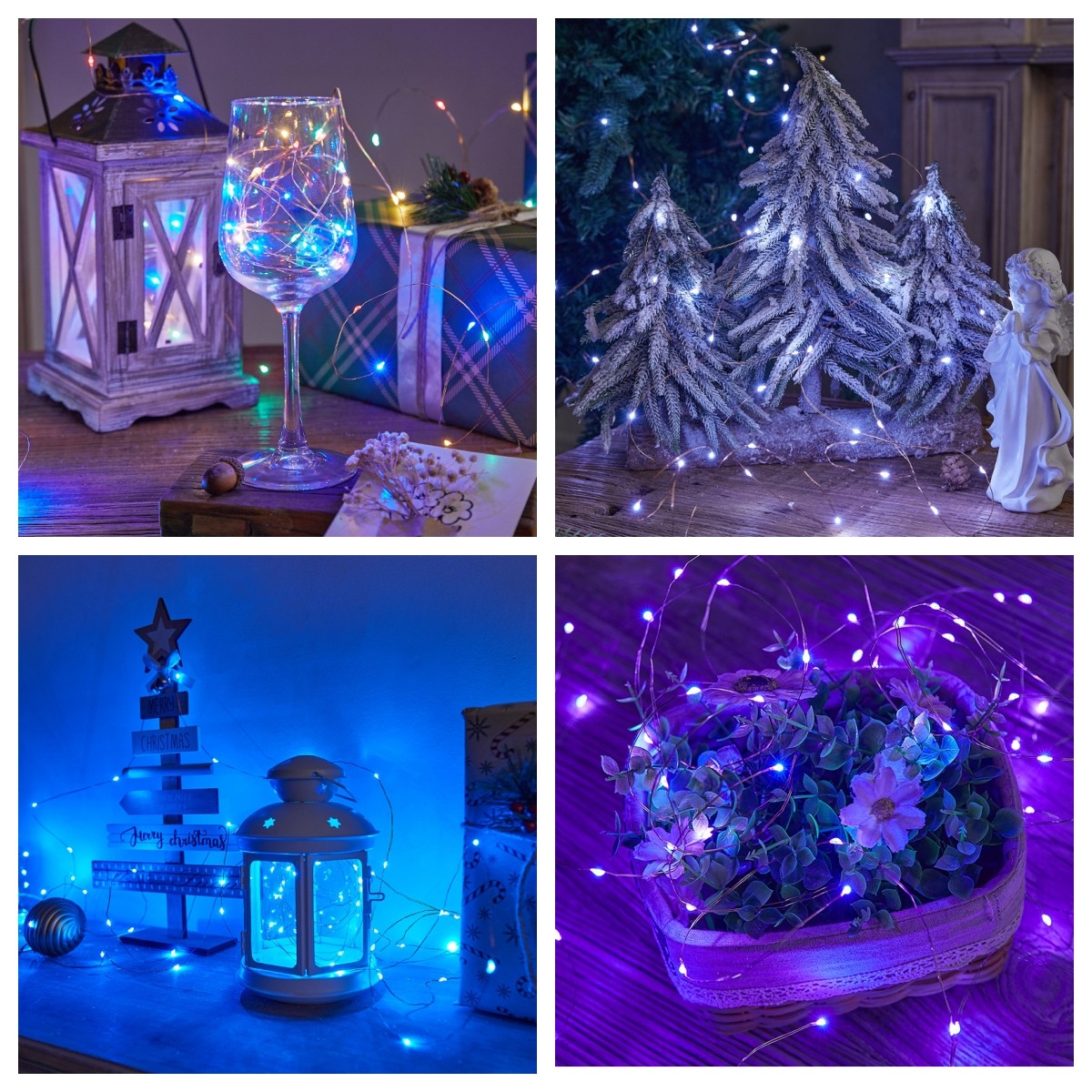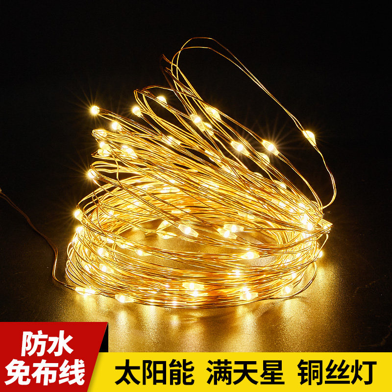 过年LED太阳能灯串户外防水满天星彩灯圣诞树氛围装饰灯电池灯珠