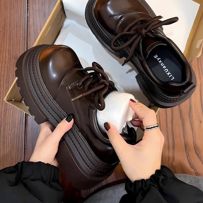 复古英伦风大头小皮鞋女2025春季新款厚底百搭系带乐福鞋增高单鞋