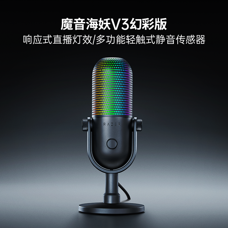 Razer雷蛇魔音海妖V3迷你版幻彩版麦克风电脑游戏直播录音室话筒