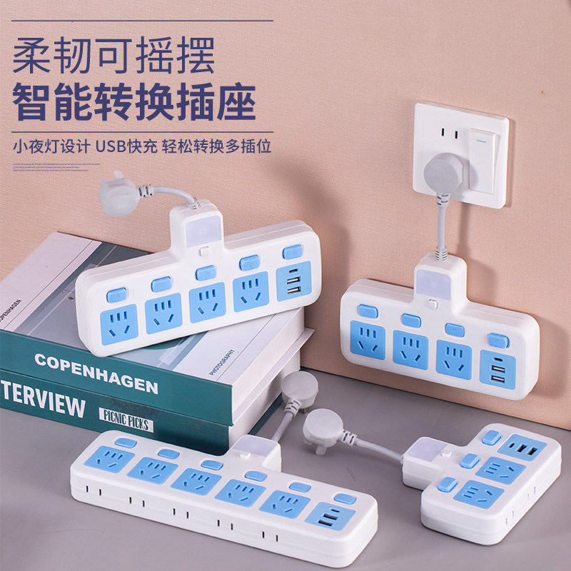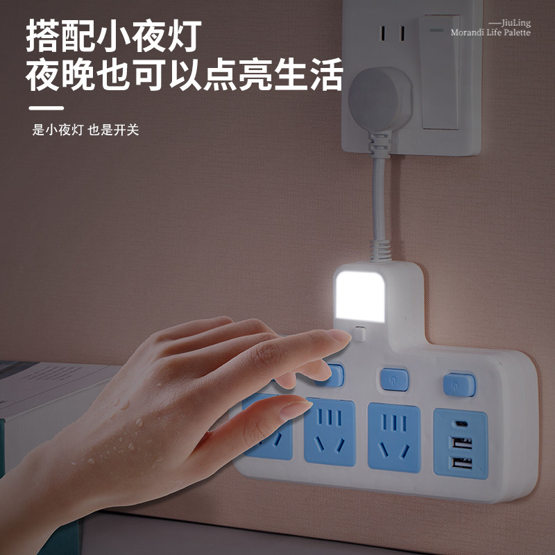 一转多插座转换器多功能带usb+typec夜灯排插插排接线板独立开关