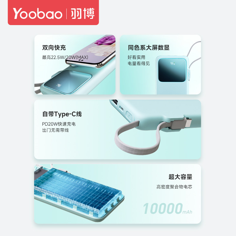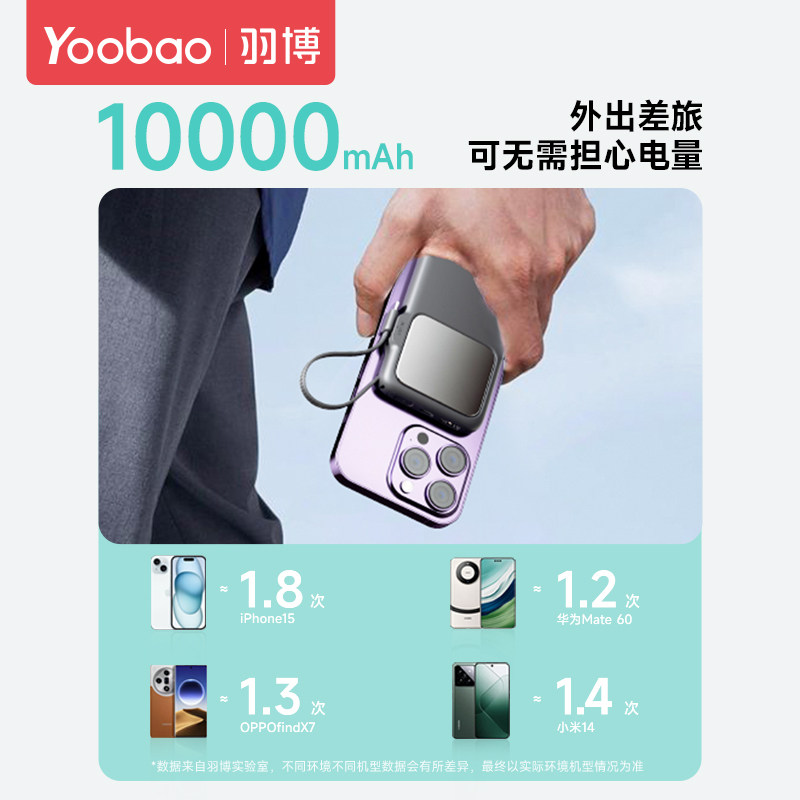 羽博充电宝3C认证10000毫安快充超薄2025新款飞机可携带移动电源
