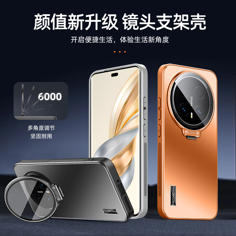 适用荣耀magic8pro手机壳镜头膜全包防摔新款肤感磨砂magic8男女高级感创意镜头隐形旋转双支架简约保护套