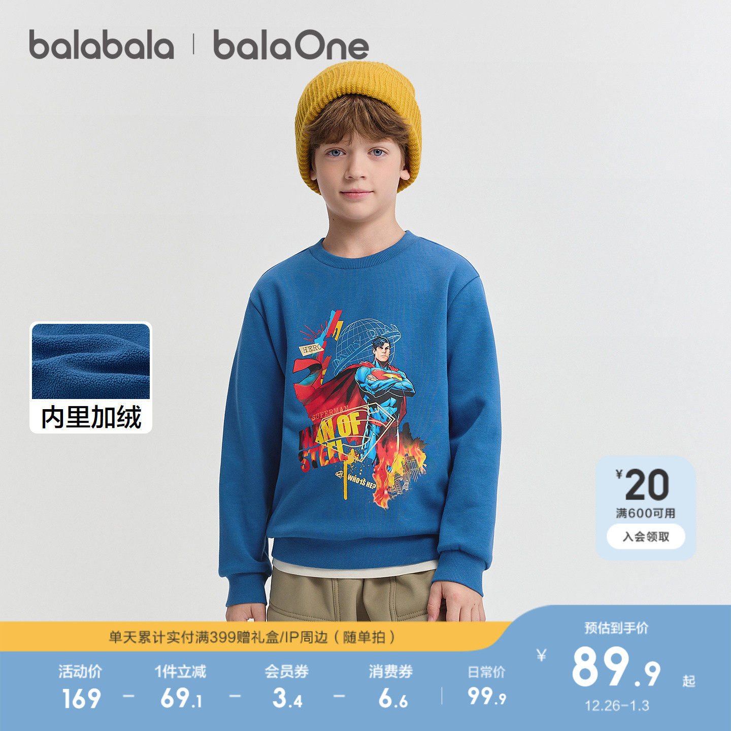 【DC超人】巴拉巴拉童装男童卫衣儿童2025新款冬装加绒上衣百搭t
