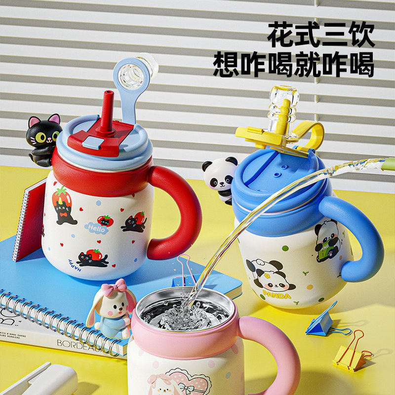保温杯316不锈钢双饮咖啡杯大容量女高颜值随行吸管水杯情侣杯子