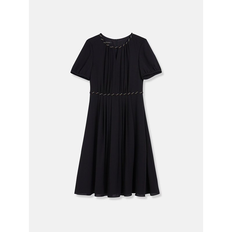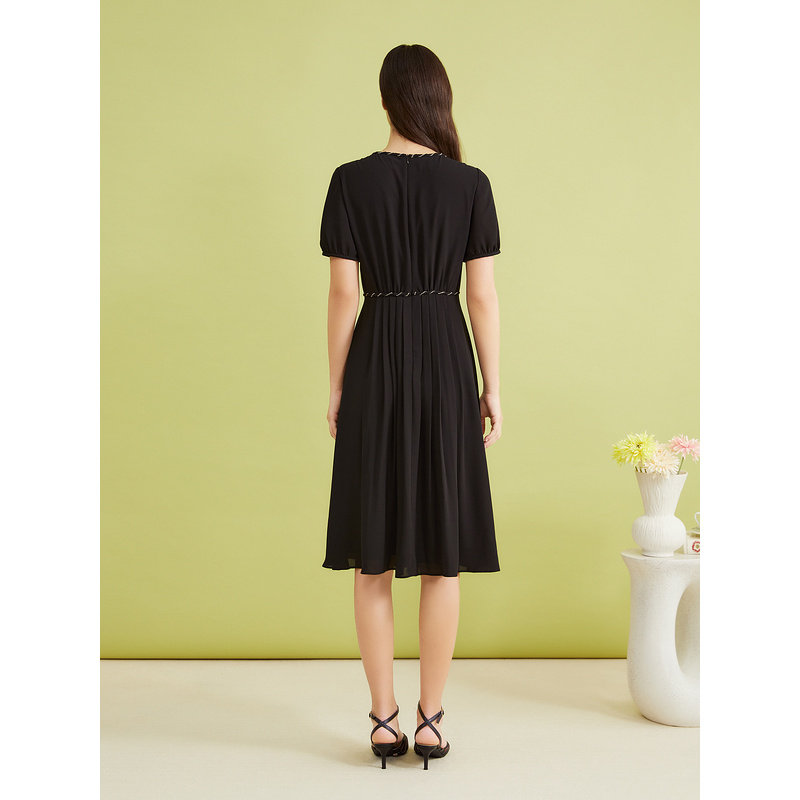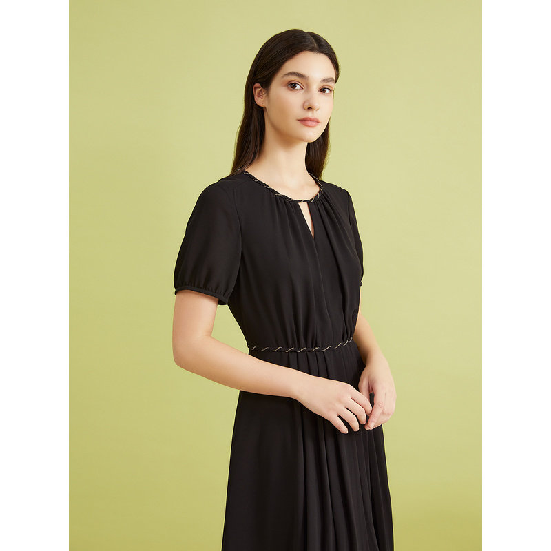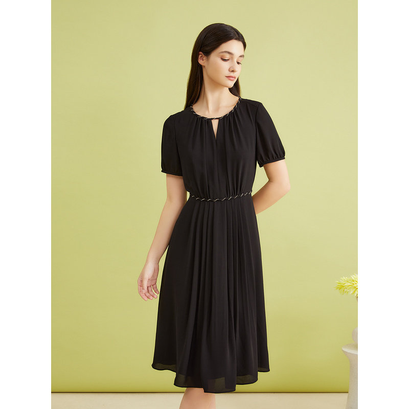 YINER音儿专选女装夏季法式小黑裙镂空小V领连衣裙