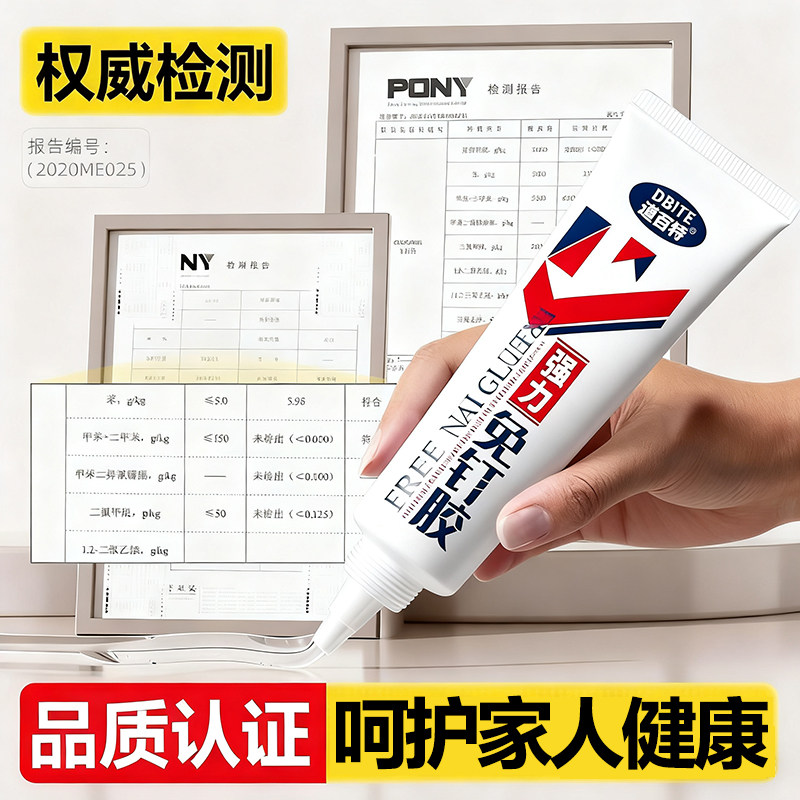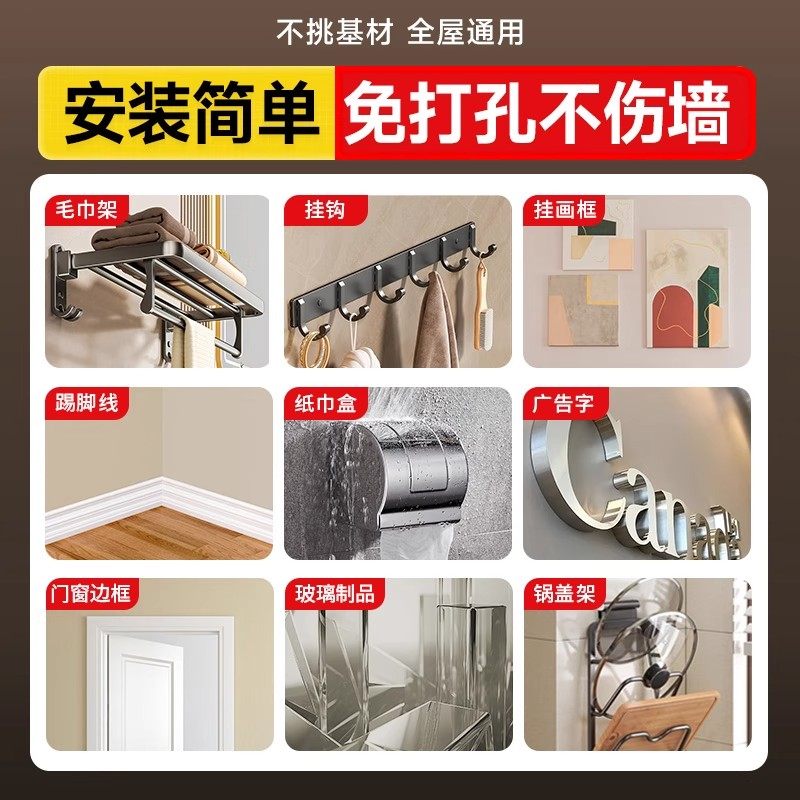 强力高粘免钉胶高粘度粘墙面金属墙壁镜子瓷砖踢脚线卫生间置物架贴墙专用防水家用胶多功能粘得牢免打孔胶水
