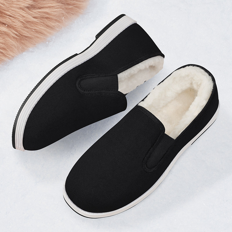 加绒一脚蹬防滑老头棉鞋2025冬季新款爸爸牛筋底保暖老北京布鞋男