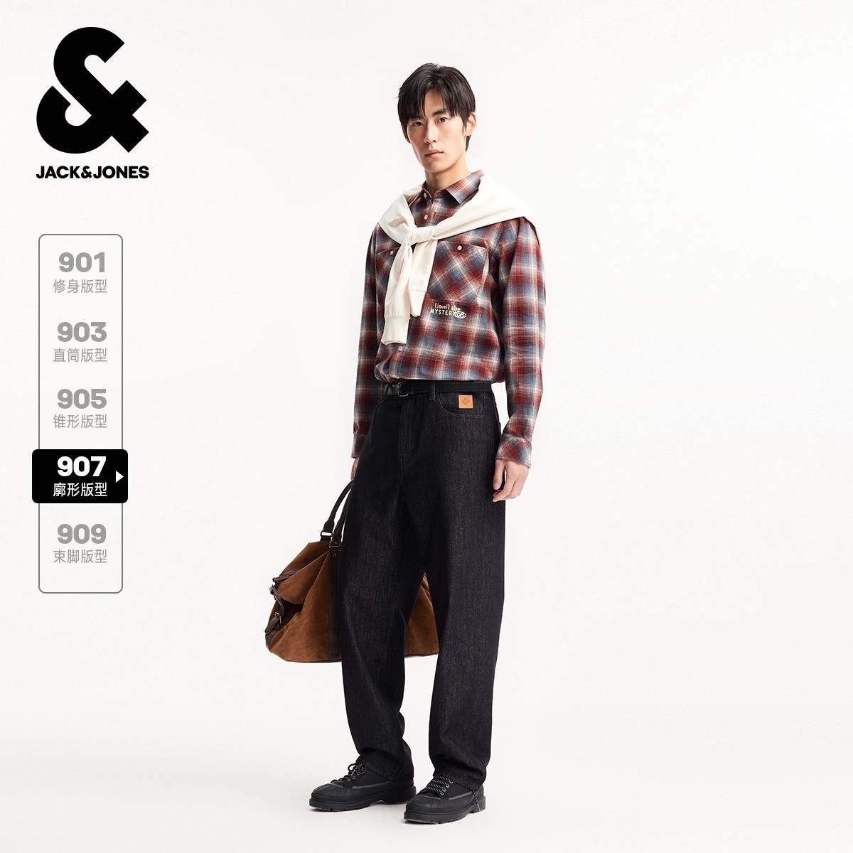 杰克琼斯秋冬季男装廓形版型牛仔裤长裤子纽扣腰头时尚百搭潮下装