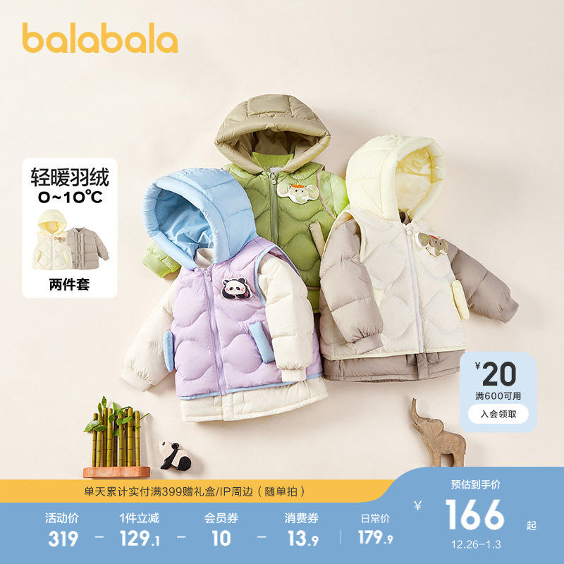 巴拉巴拉童装婴儿羽绒服保暖宝宝外套儿童冬装两件套加绒萌趣上衣