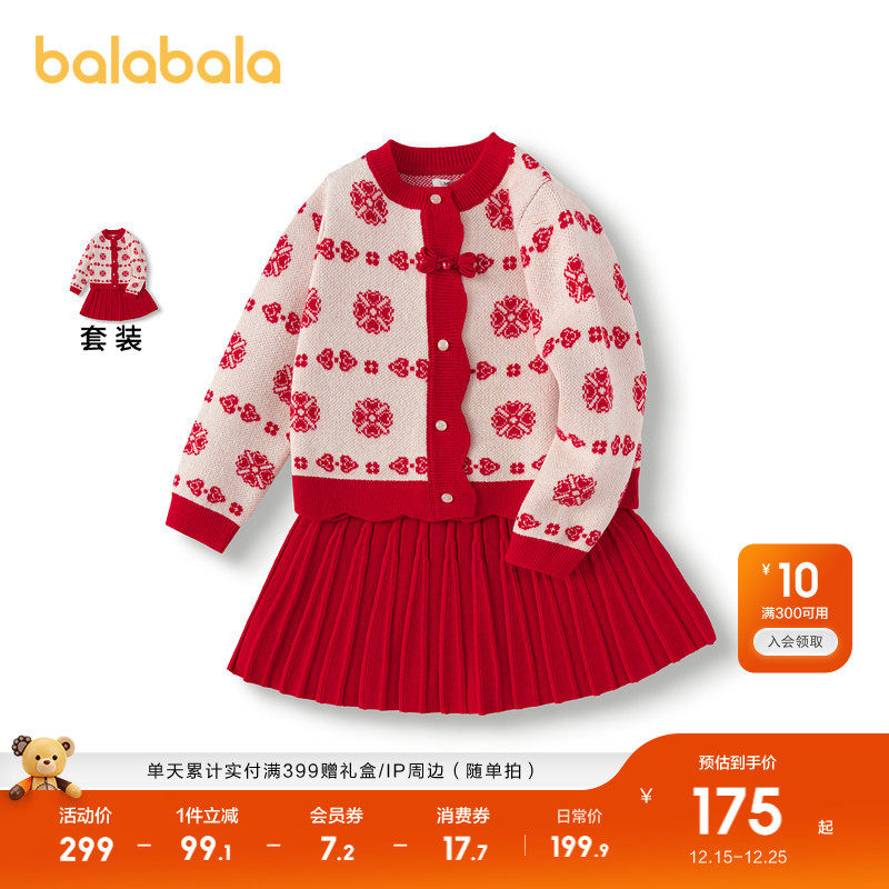 【国博IP】巴拉巴拉女童短裙套装儿童国风2025新两件套保暖春秋潮