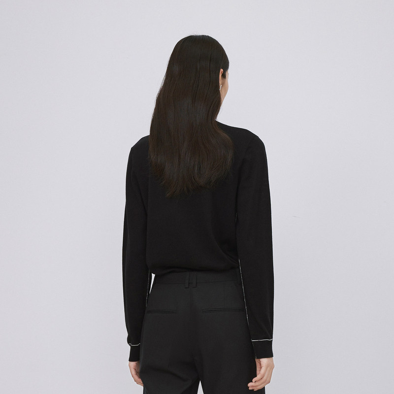 三福长袖上衣2025新款秋季圆领修身针织衫简约纯色内搭打底衫女装
