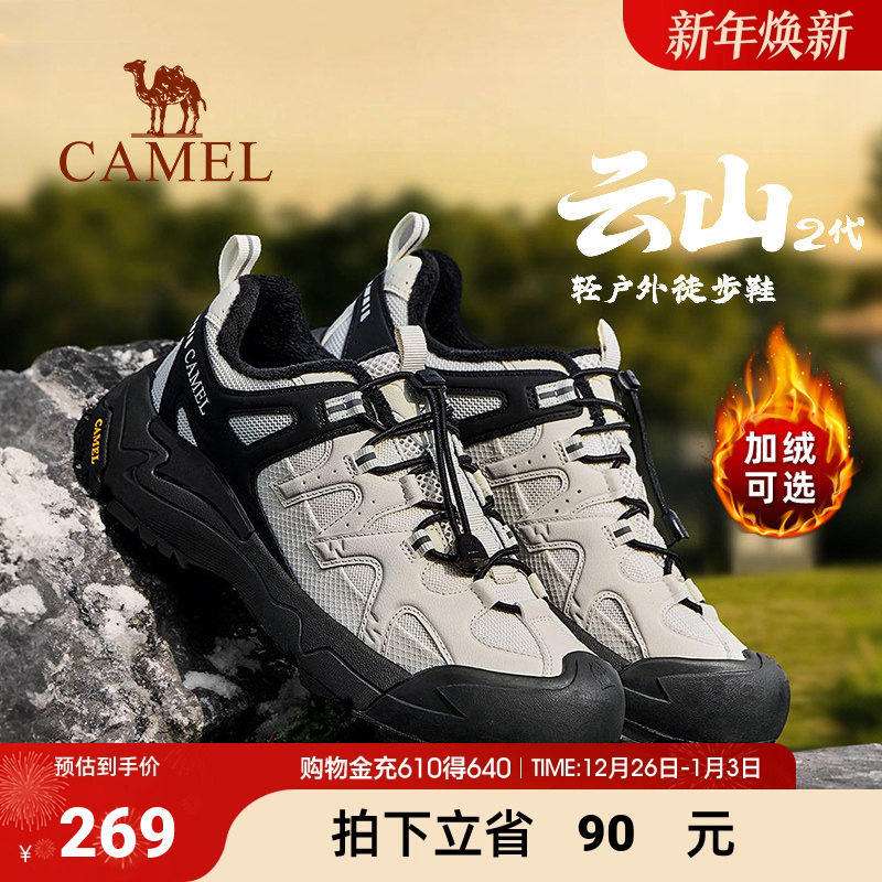 骆驼云山2代2025年冬季男士鞋休闲运动鞋情侣户外登山徒步鞋加绒