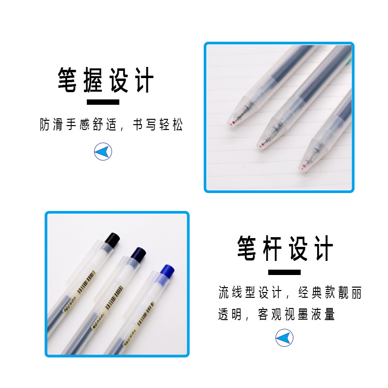 晨光按动中性笔黑色笔速干顺滑高颜值红蓝碳素笔考试办公用签字笔