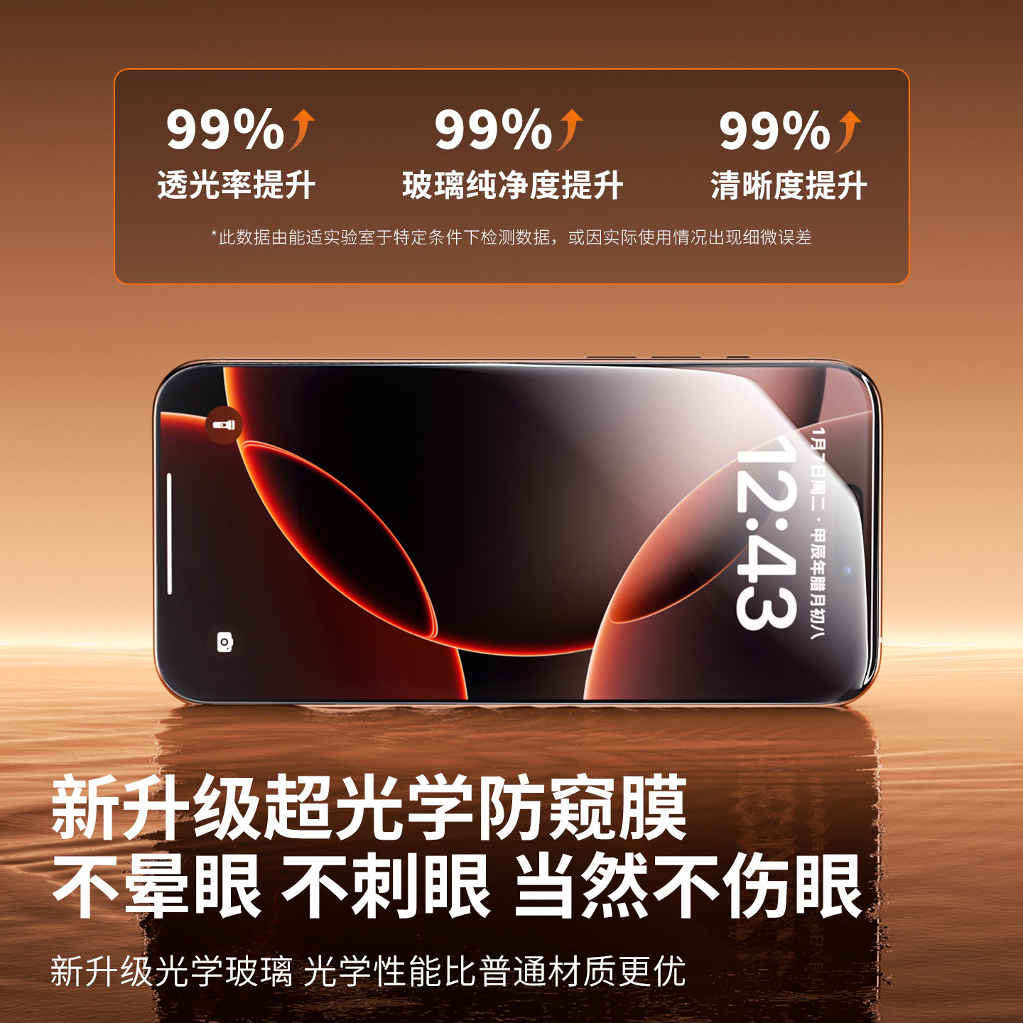 倍思无色防窥膜适用苹果iPhone17ProMax钢化膜16Pro无尘仓ip15手机贴膜AR抗反射360°防偷窥14防摔Air保护13