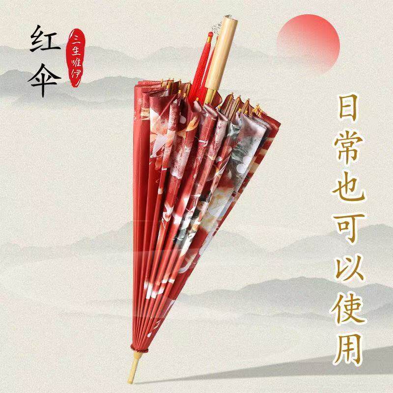 红伞结婚新娘伞长柄大号古风汉服伞复古婚礼婚嫁婚庆接亲红色雨伞