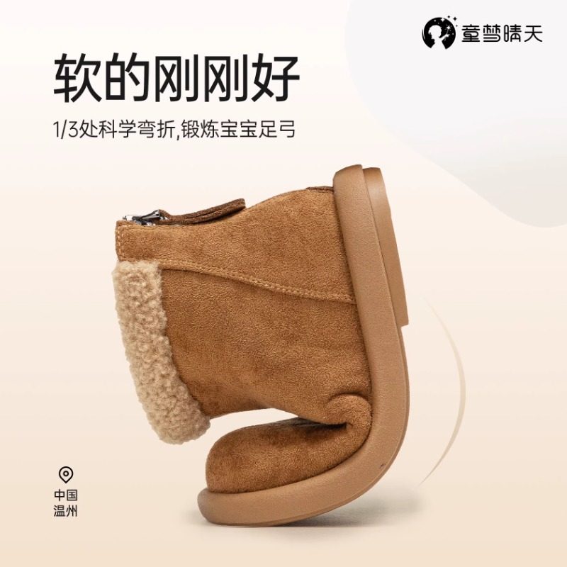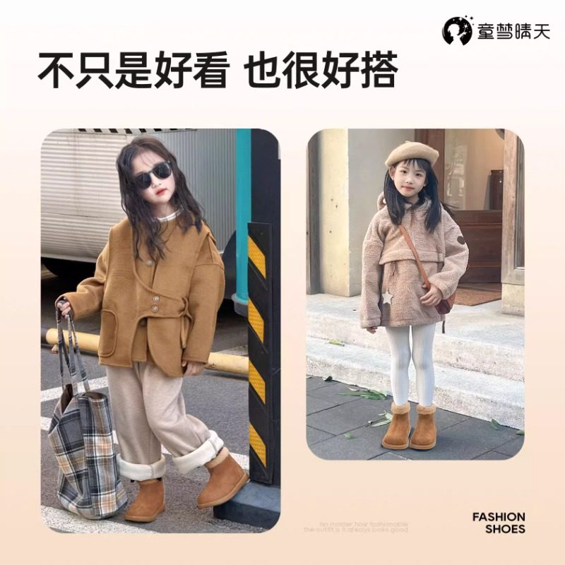 女童靴子真皮马丁靴儿童棉靴2024冬季新款勃肯鞋短靴反绒皮雪地靴