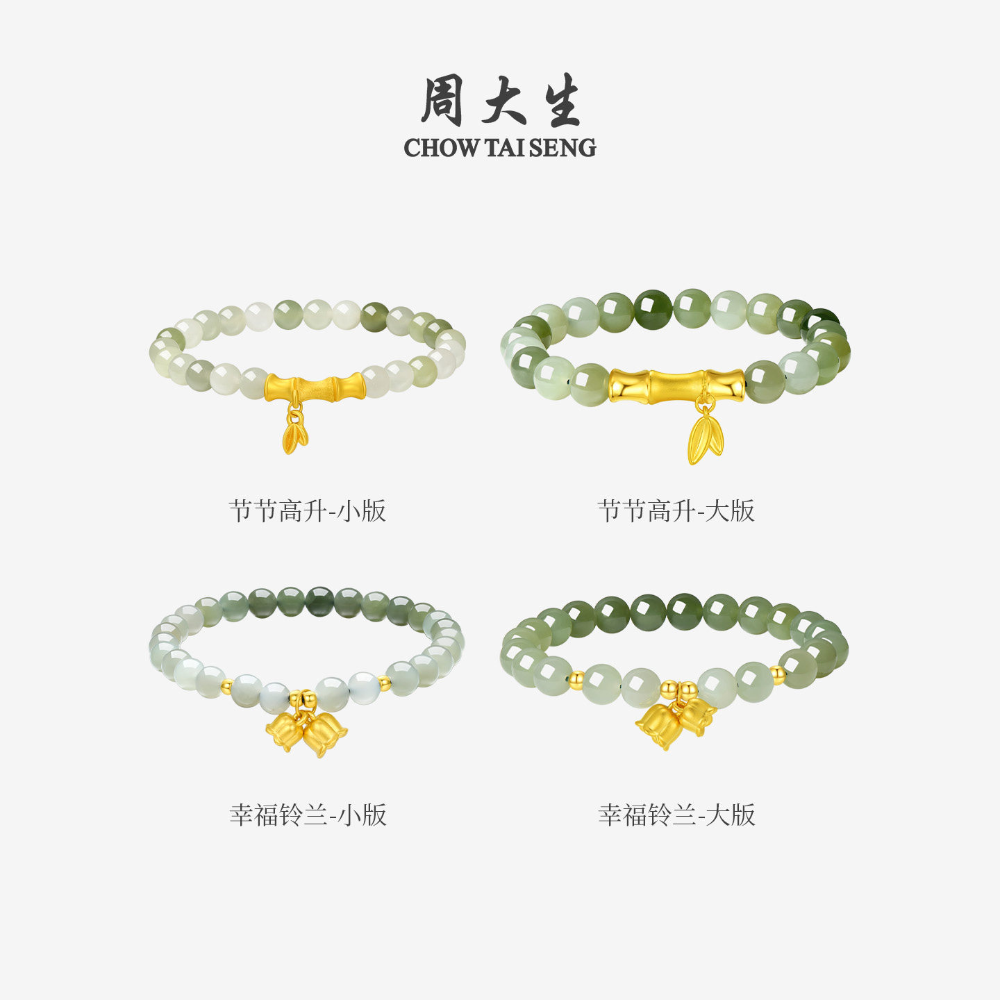 周大生和田玉手串黄金竹节两世欢铃兰手链新年礼物送女朋友送妈妈