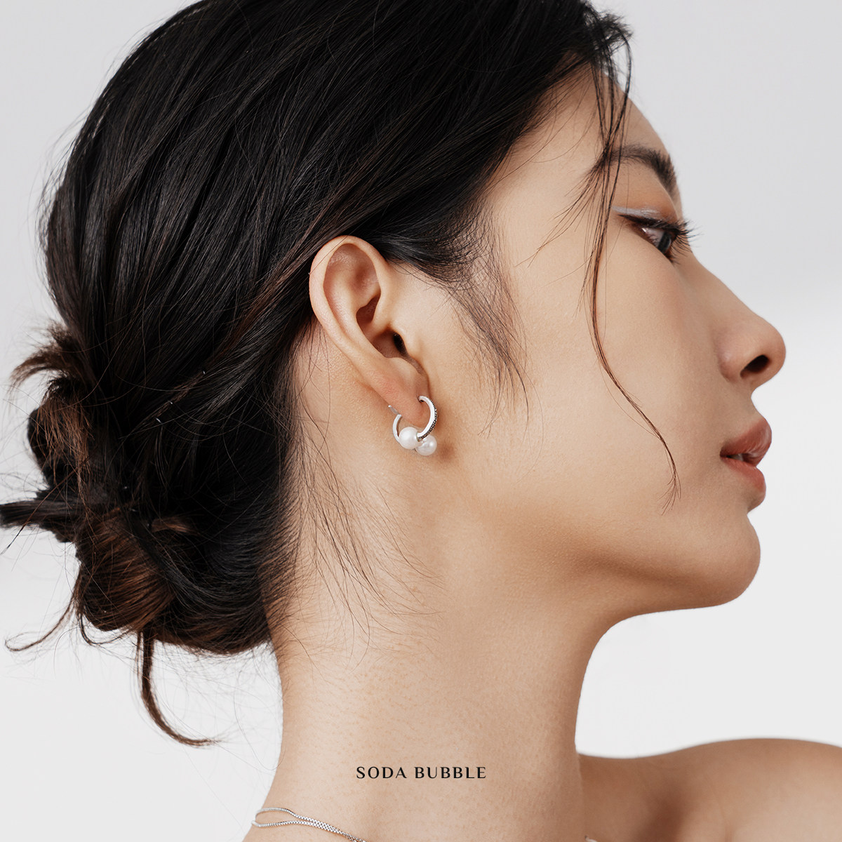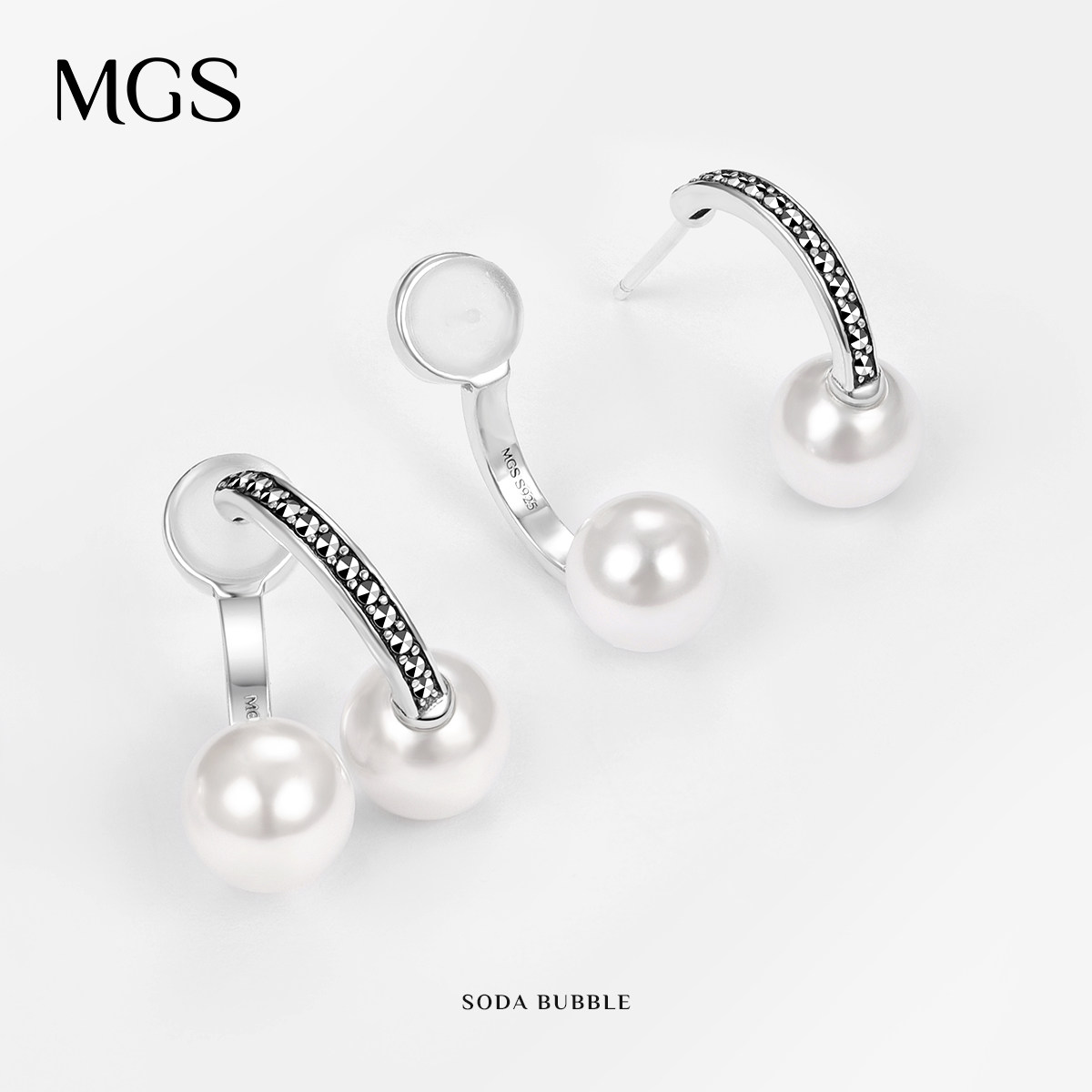 MGS曼古银苏打泡泡珍珠耳饰S925纯银耳环女时尚设计气质独特耳钉