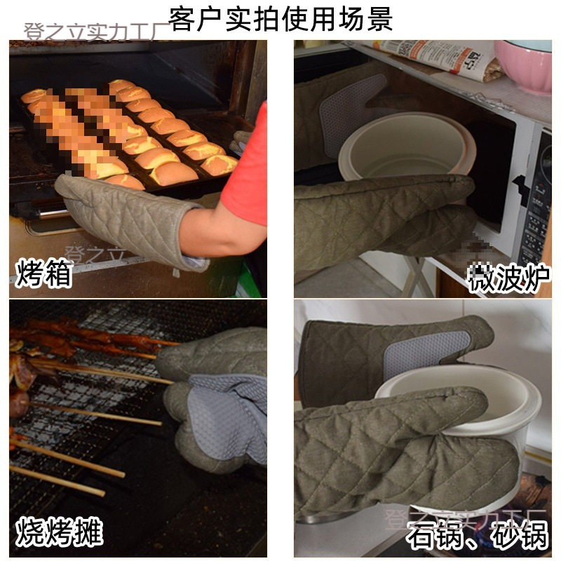 耐高温500度电烤箱烘焙烤炉挂烫机隔热防烫防滑帆布硅胶商用手套