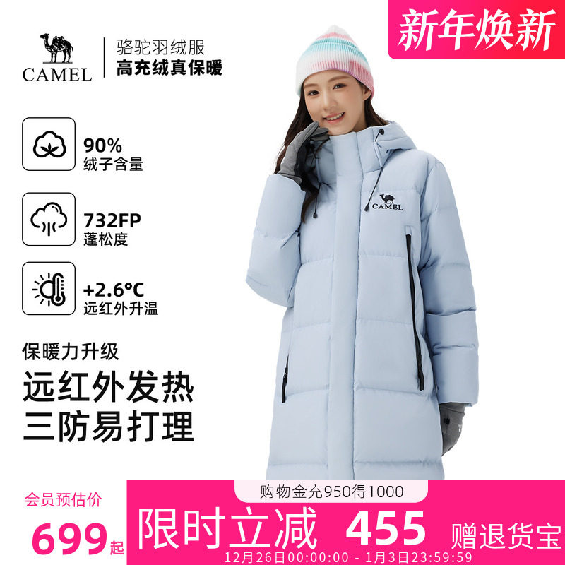 骆驼羽绒服中长款男女款2025新款冬季加厚保暖女装外套旗舰店正品