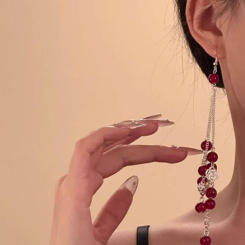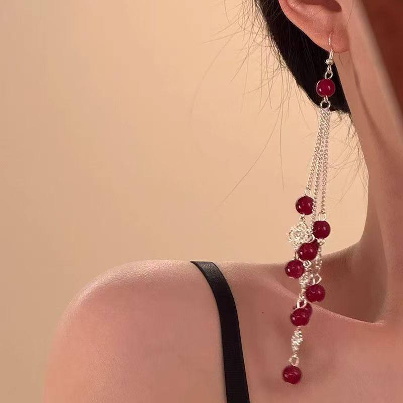 红珠绮片民族风复古花纹流苏耳钩小众耳环轻奢高级感耳饰红色