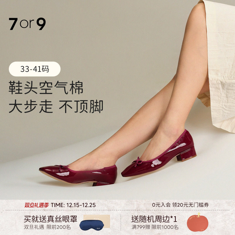 7or9女鞋平底鞋一脚蹬红色本命新年单鞋通勤粗跟复古芭蕾鞋树莓卷